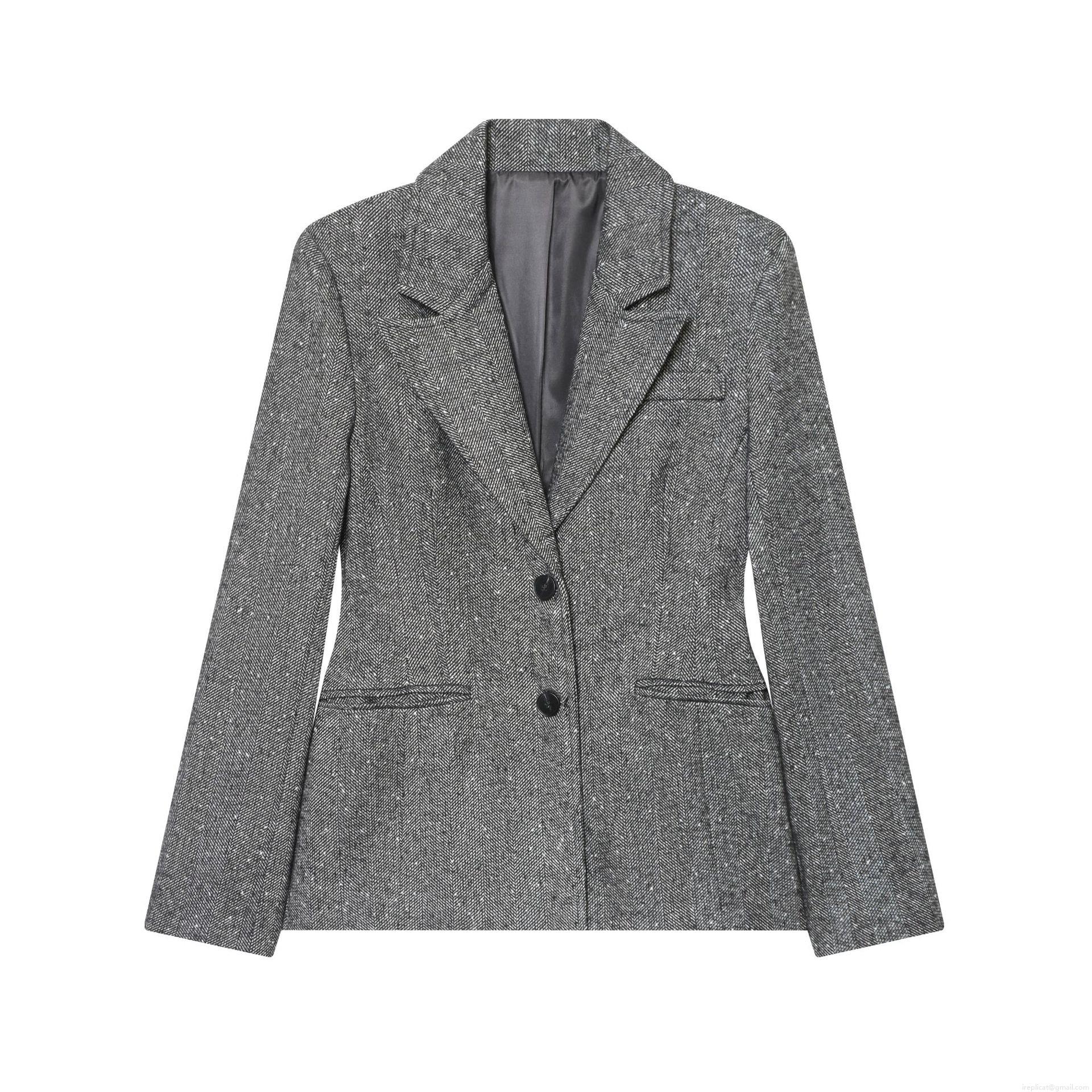 • Women's Herringbone Blazer Grey Polyester Blend Skirt Hem Fitted Suit Single Breasted Lapel Long Sleeve Outerwear For Women Office Lady Winter Autumn Outwear