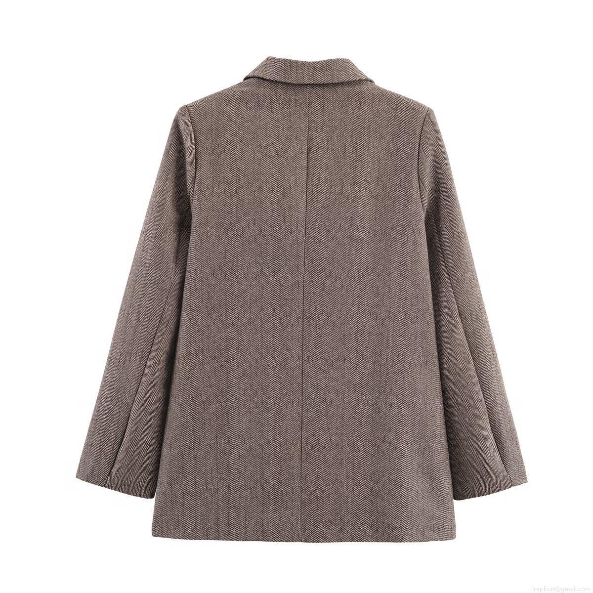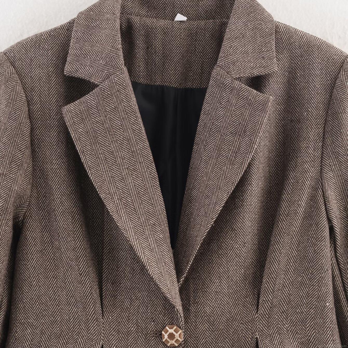 Women's Herringbone Blazer Jacket Polyester Wool Look Long Sleeve Slim Fit Lapel Suit Single Breasted Autumn Winter Vintage Casual Office Ladies Streetwear Outerwear