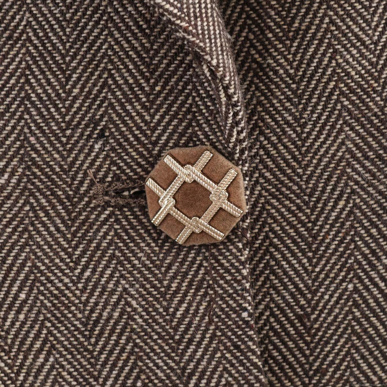 Herringbone, Twill, Button Decoration, Herringbone Pattern, Waist-cinching Cut