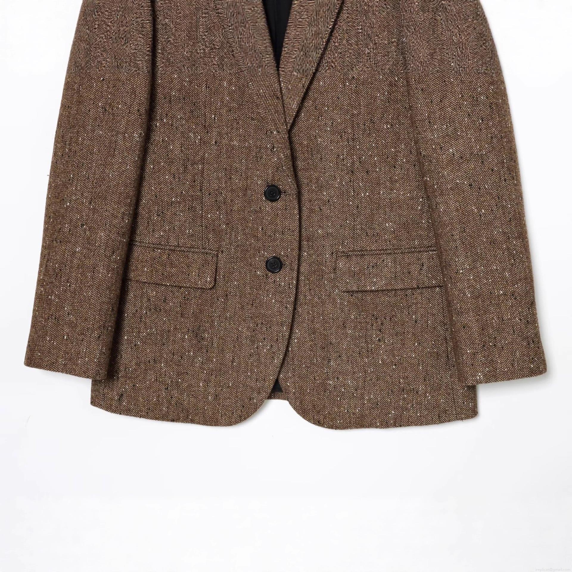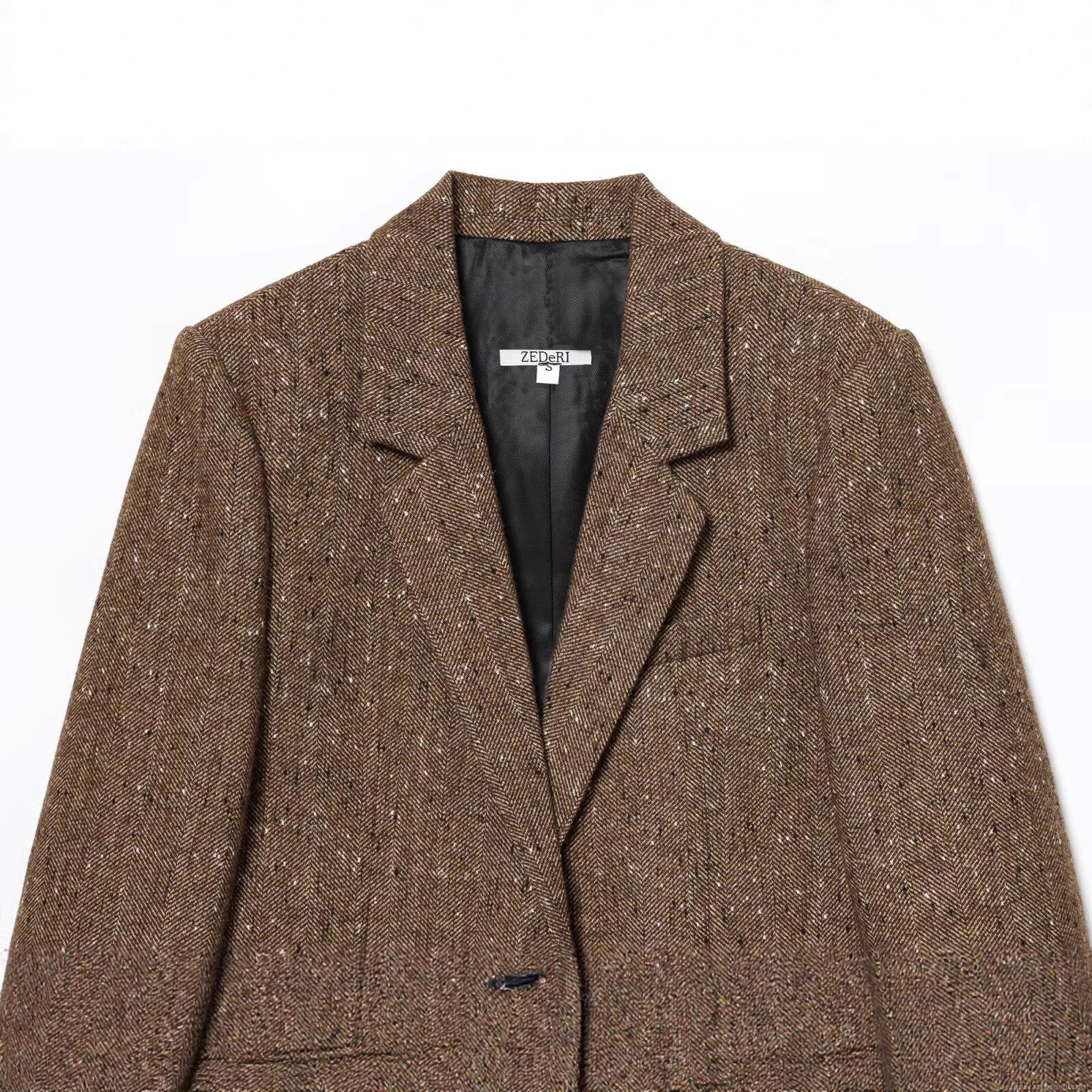 • Women's Herringbone Tweed Blazer Jacket Notched Lapel Long Sleeve Single Breasted Pocket Outerwear Casual Work Office Fashion Overcoat