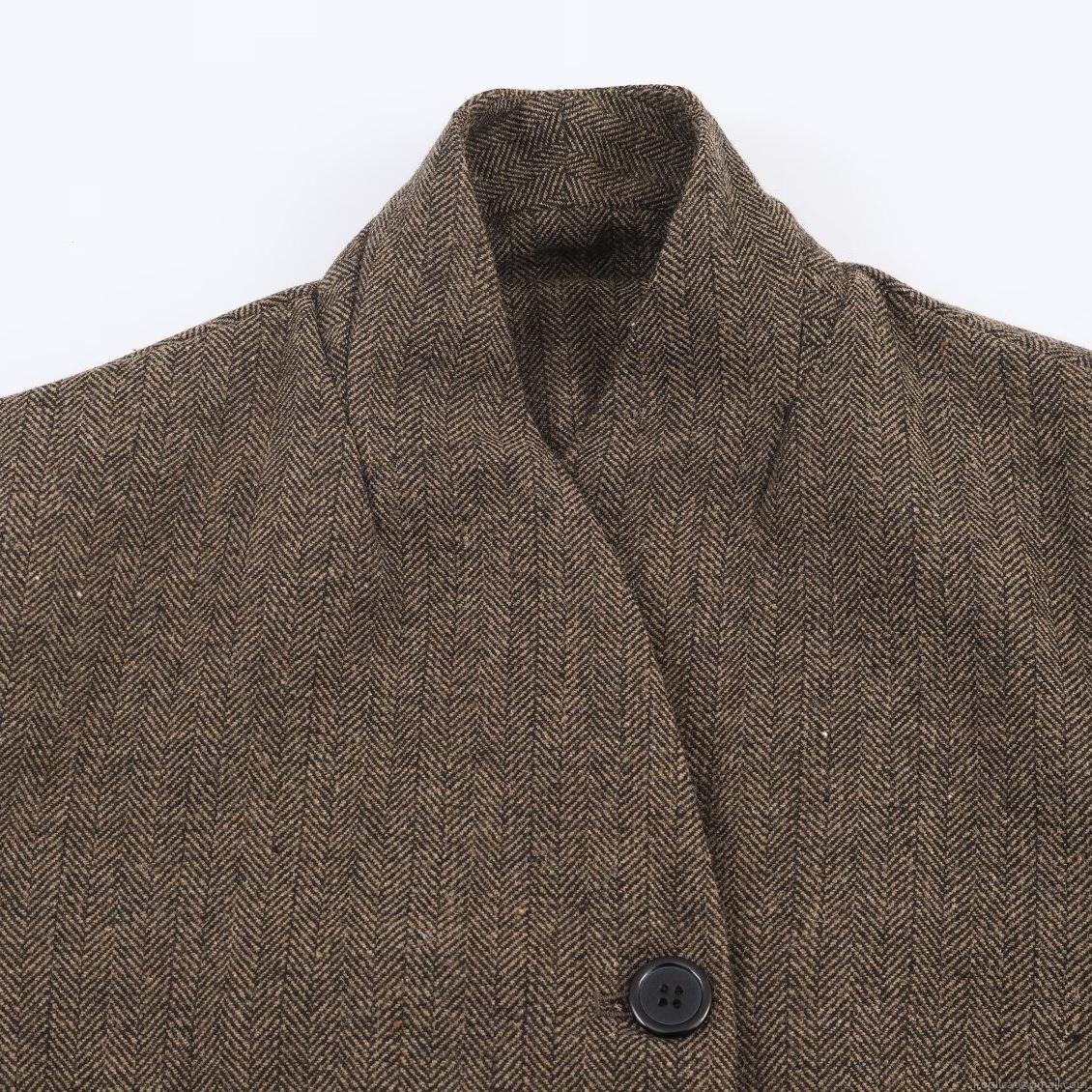 • Women's Herringbone Twill Blazer Jacket Mixed Woolen Fabric Single Breasted Notched Lapel Long Sleeve Loose Fit Coat For Winter Office Commute Elegant Lady Outerwear