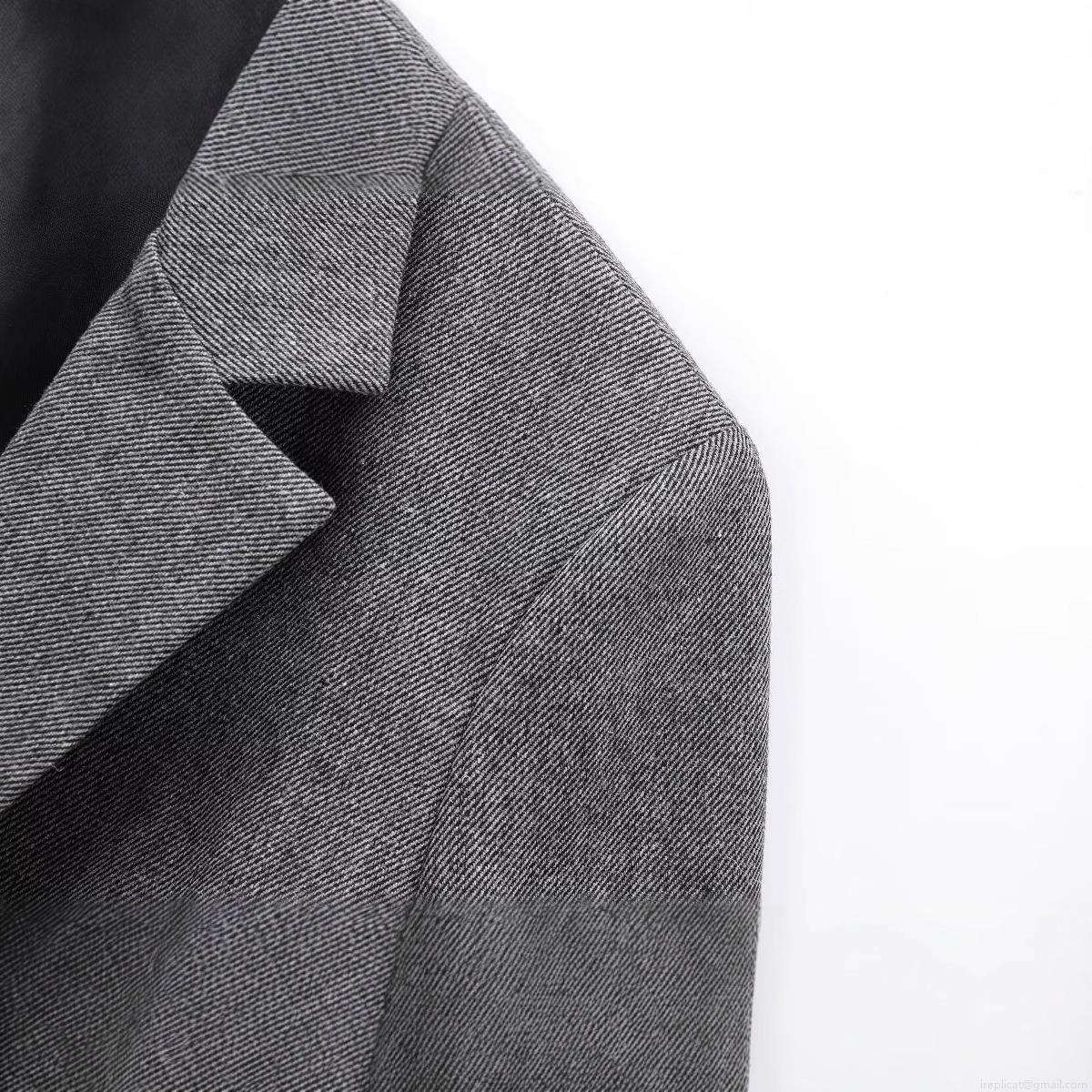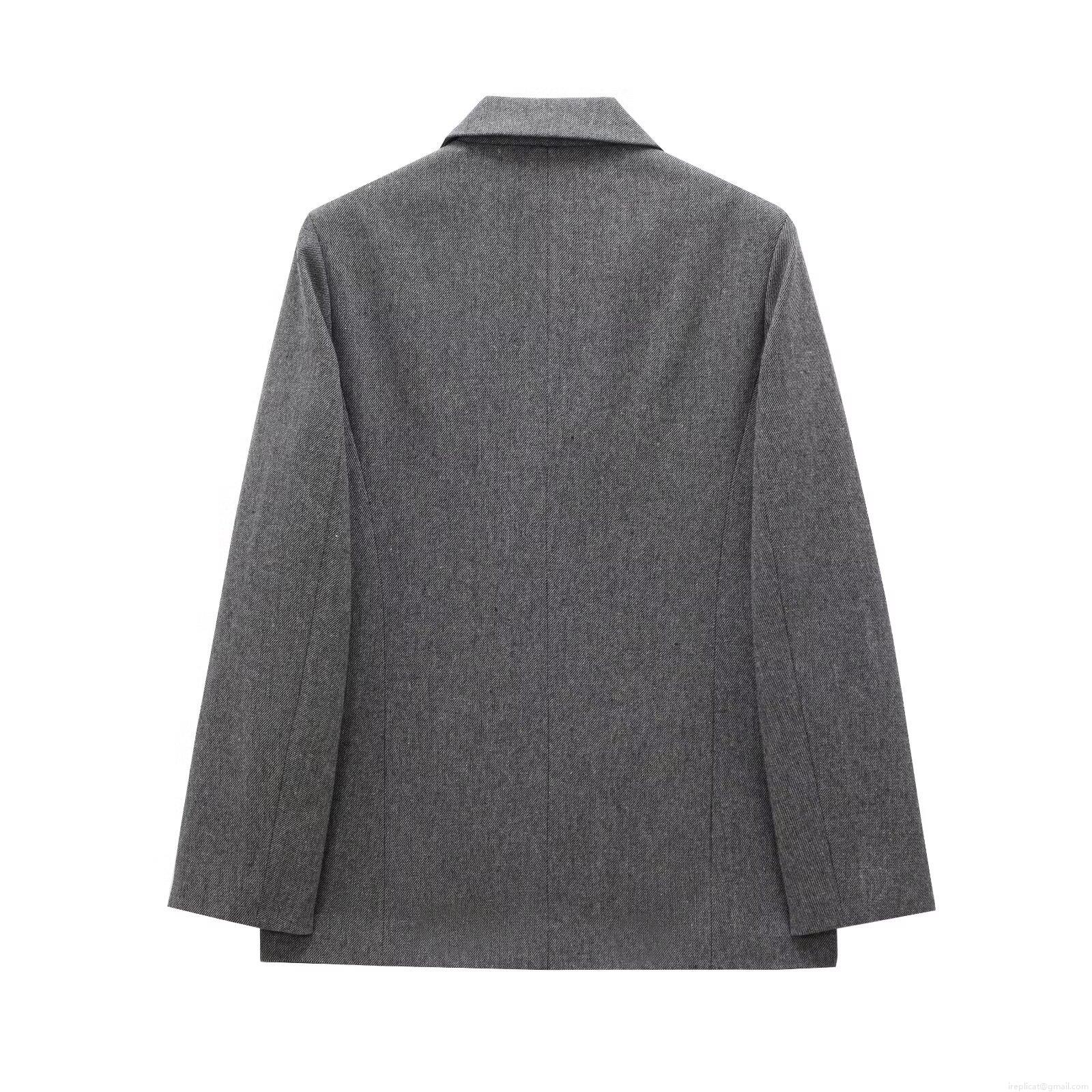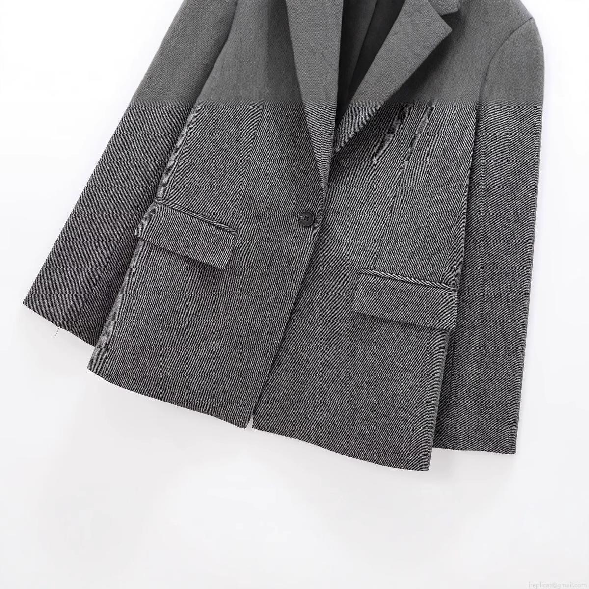• Women's Herringbone Wool Blend Blazer Loose Fit Notch Lapel Office Commuter Jacket Elegant Single Button Grey Outerwear With Flap Pockets