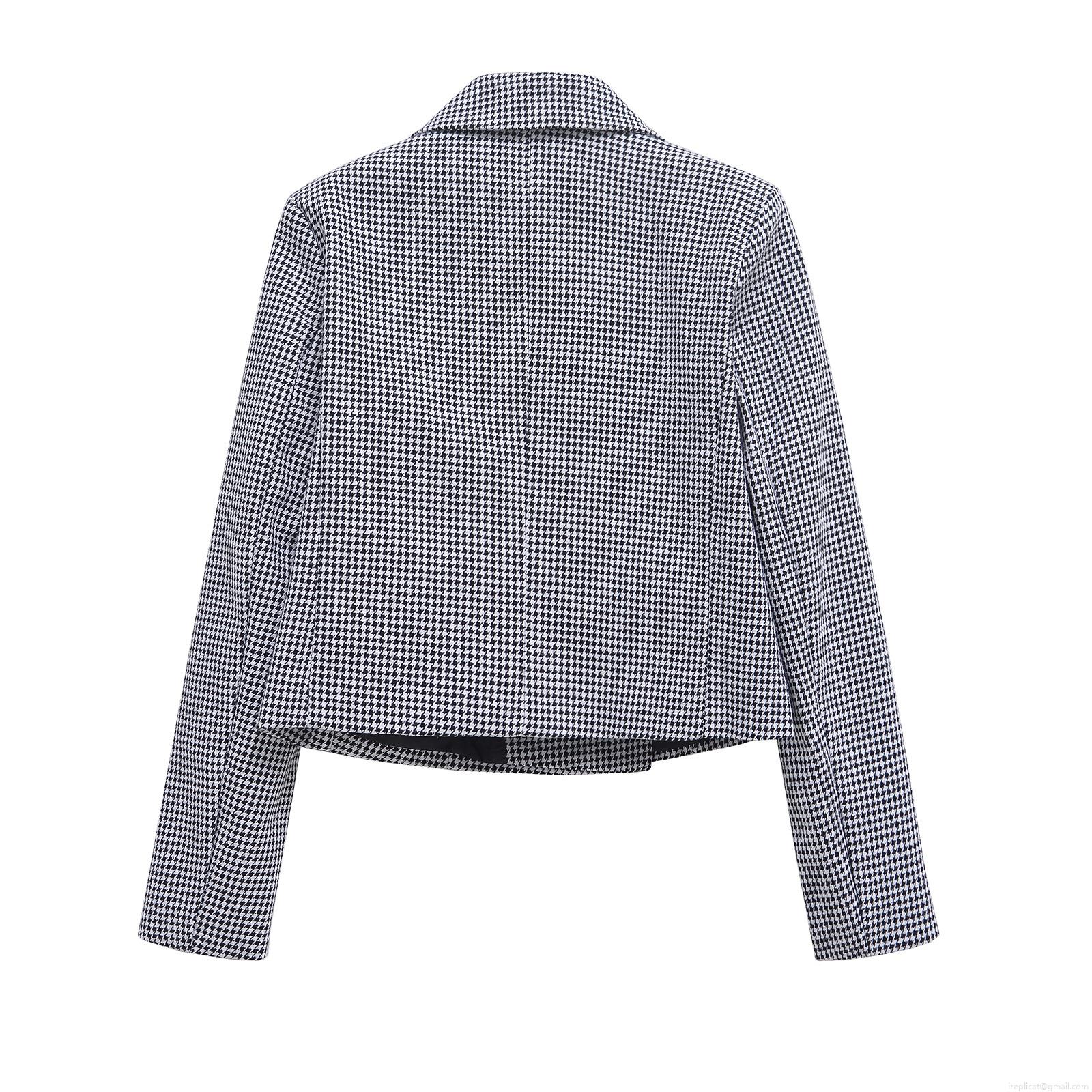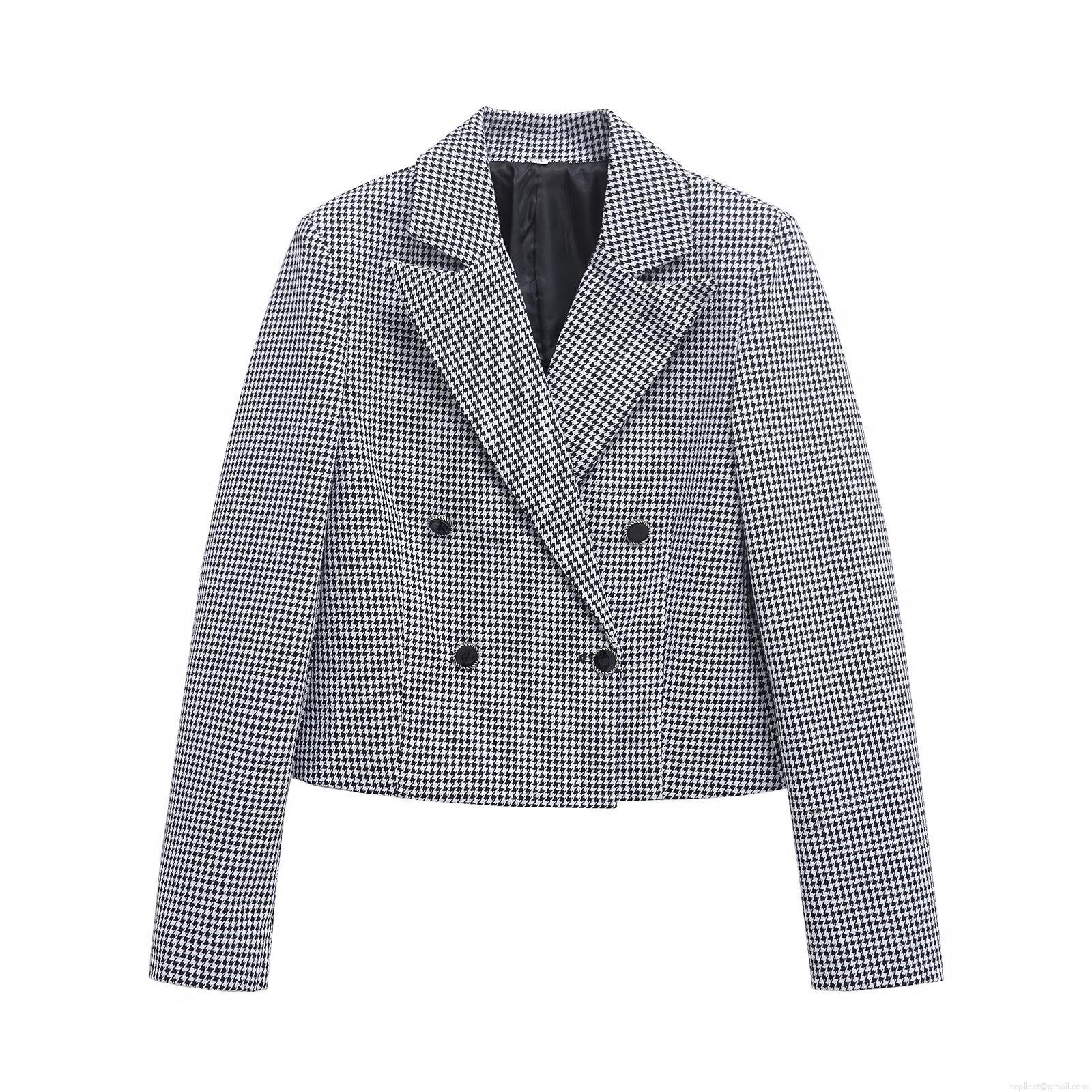 • Women's Houndstooth Blazer Double Breasted Lapel Long Sleeve Short Jacket Casual Polyester Office Streetwear Outwear For Women