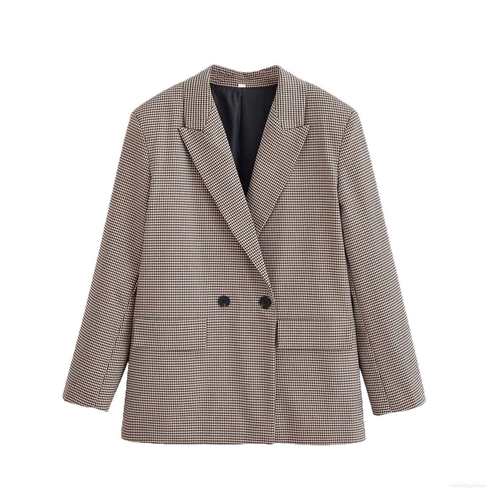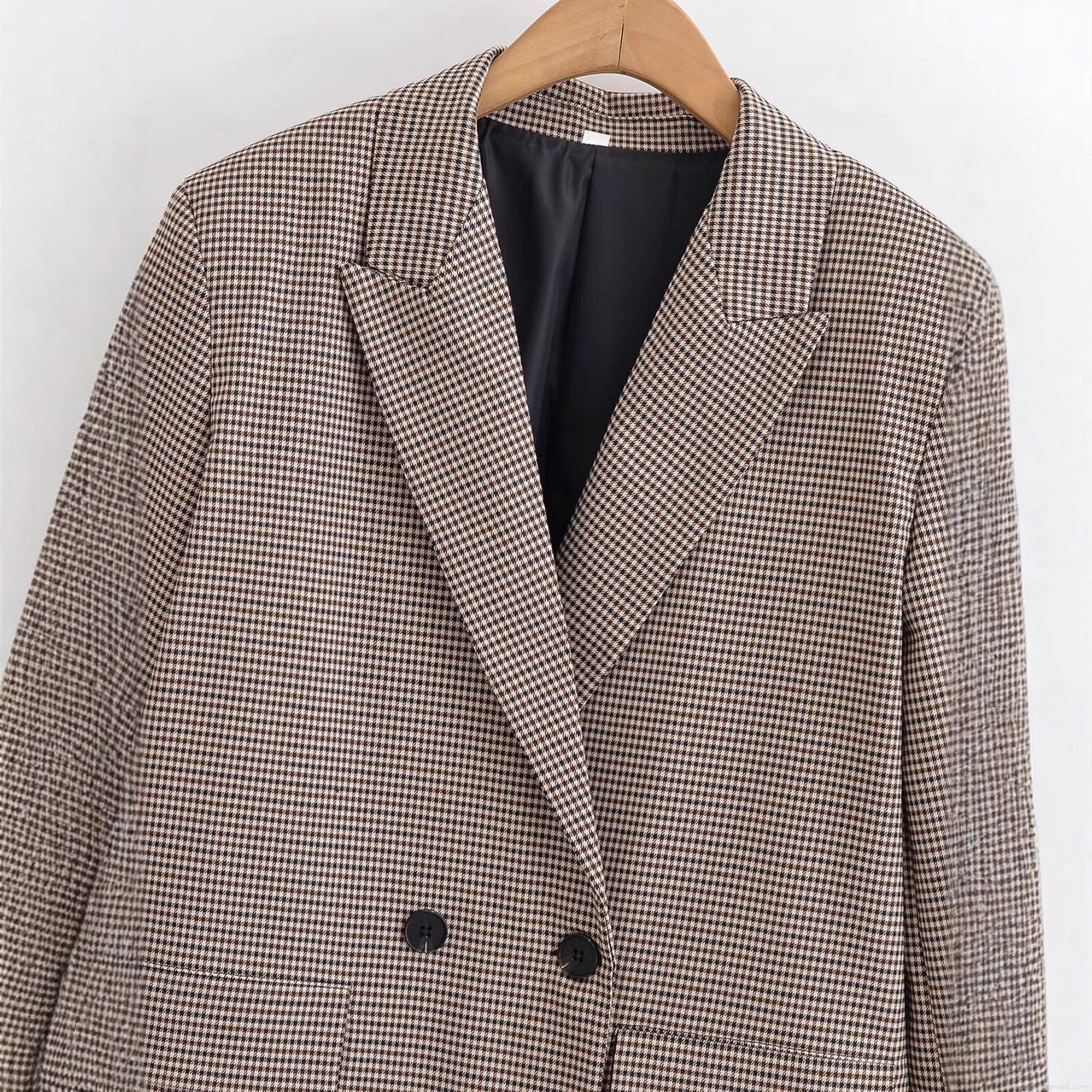 • Women's Houndstooth Blazer Jacket Double Breasted Long Sleeve 100% Polyester Notch Lapel Suit Coat Retro Office Work Daily Wear