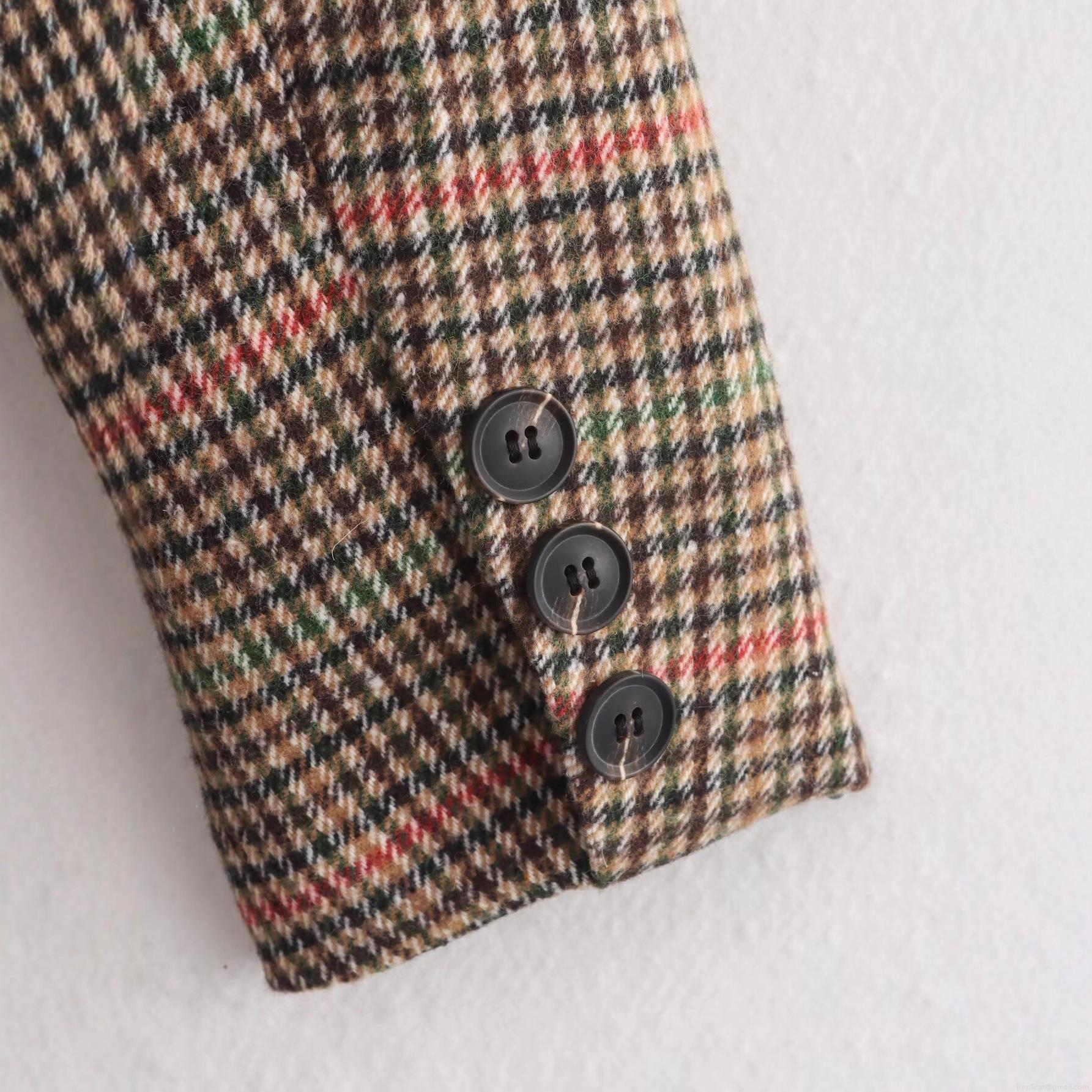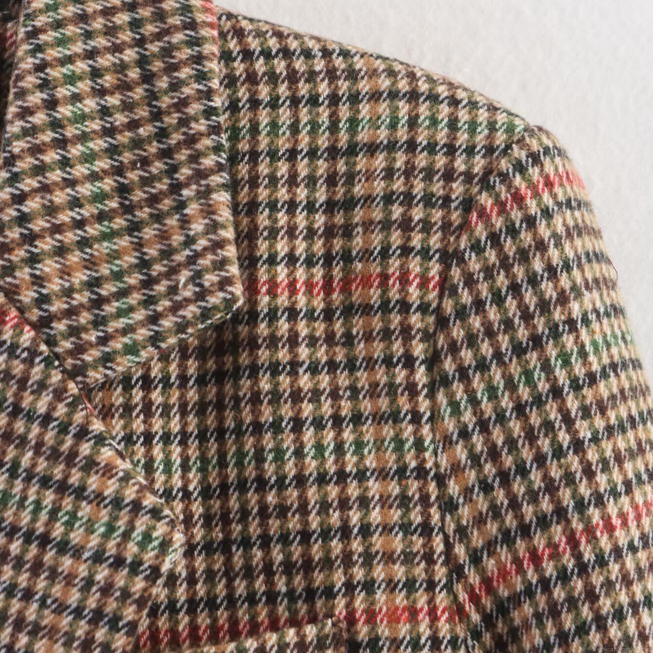 Women's Houndstooth Plaid Blazer Jacket Vintage Single Breasted Two Button Polyester Tweed Coat For Office Streetwear Fall Winter Fashion