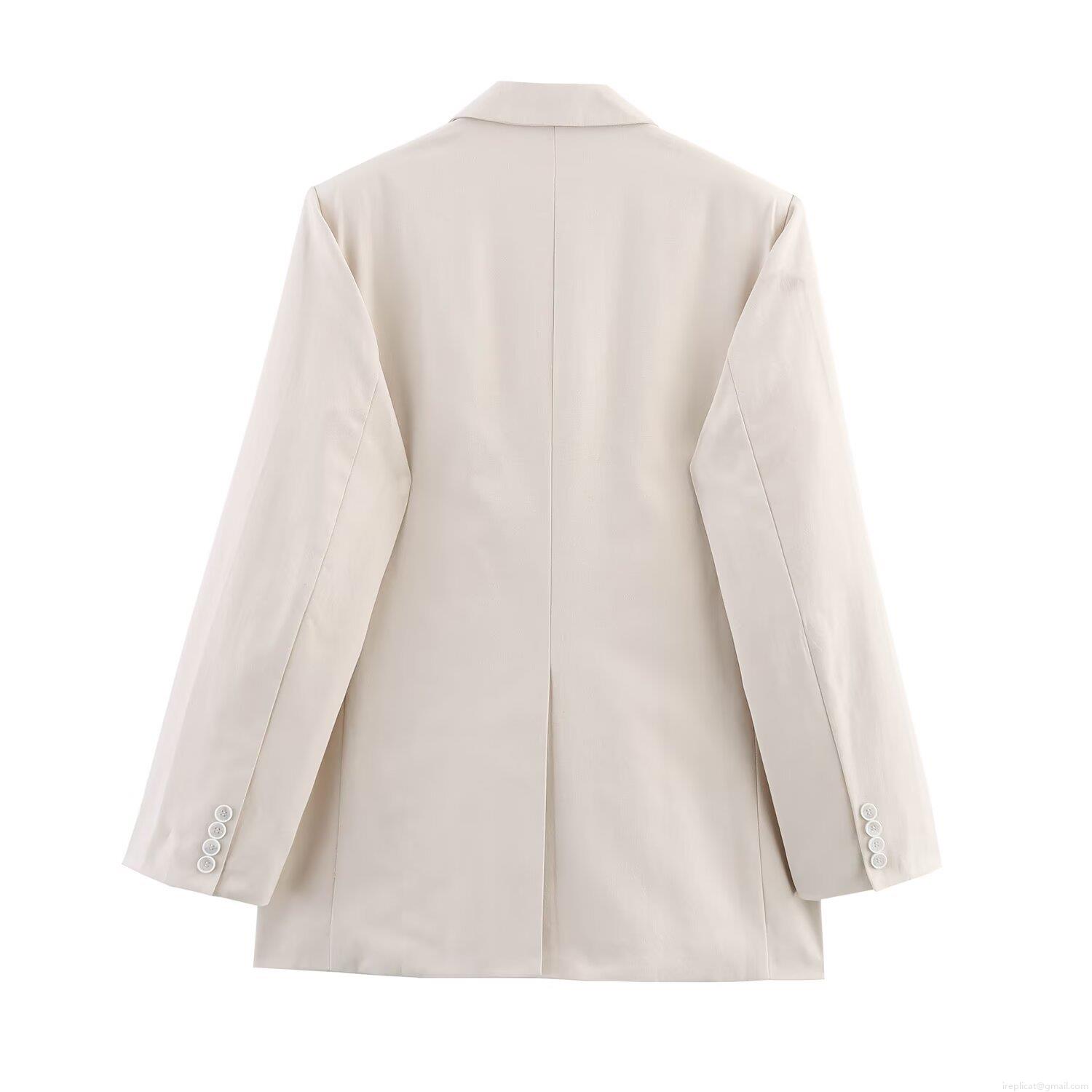 • Women's Loose Blazer Jacket Polyester Lapel Long Sleeve Solid Color Suit For Office Commute Formal Lady Style Outerwear Coat