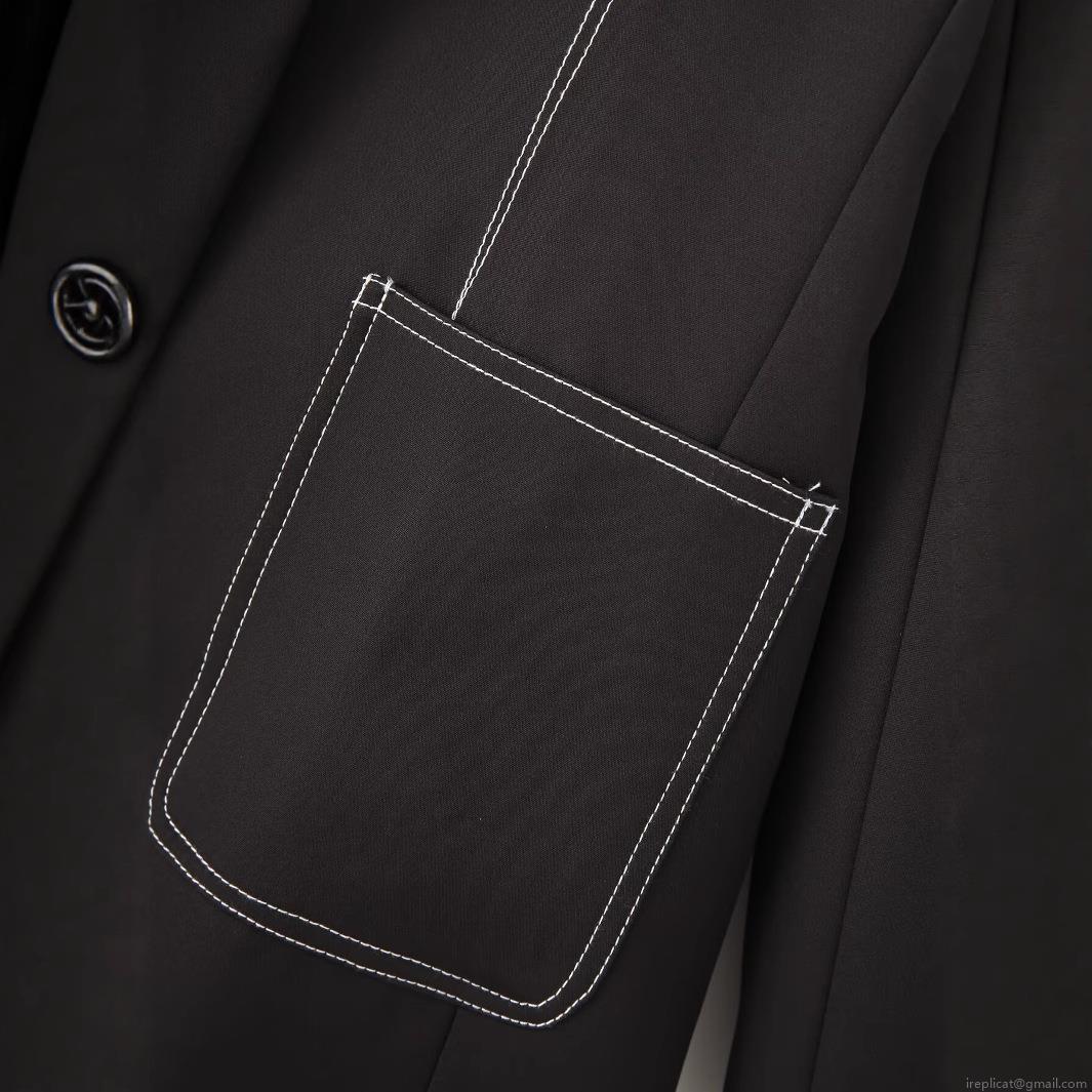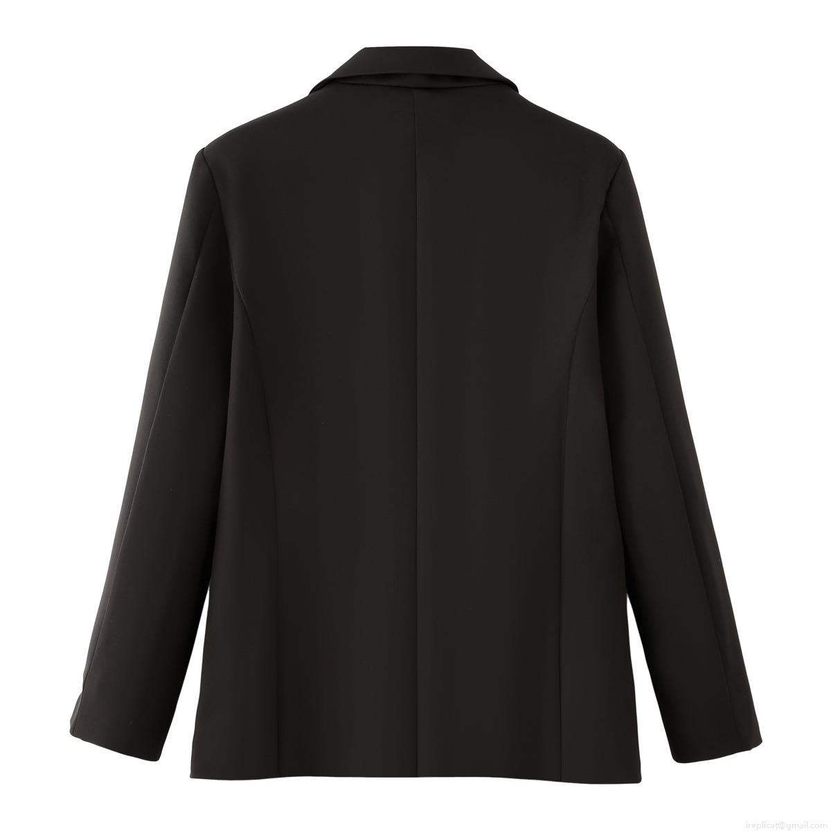 • Women's Loose Fit Contrast Stitching Blazer Jacket Black Single Breasted Lapel Long Sleeve Polyester Outerwear Streetwear Fashion Coat For Daily Wear