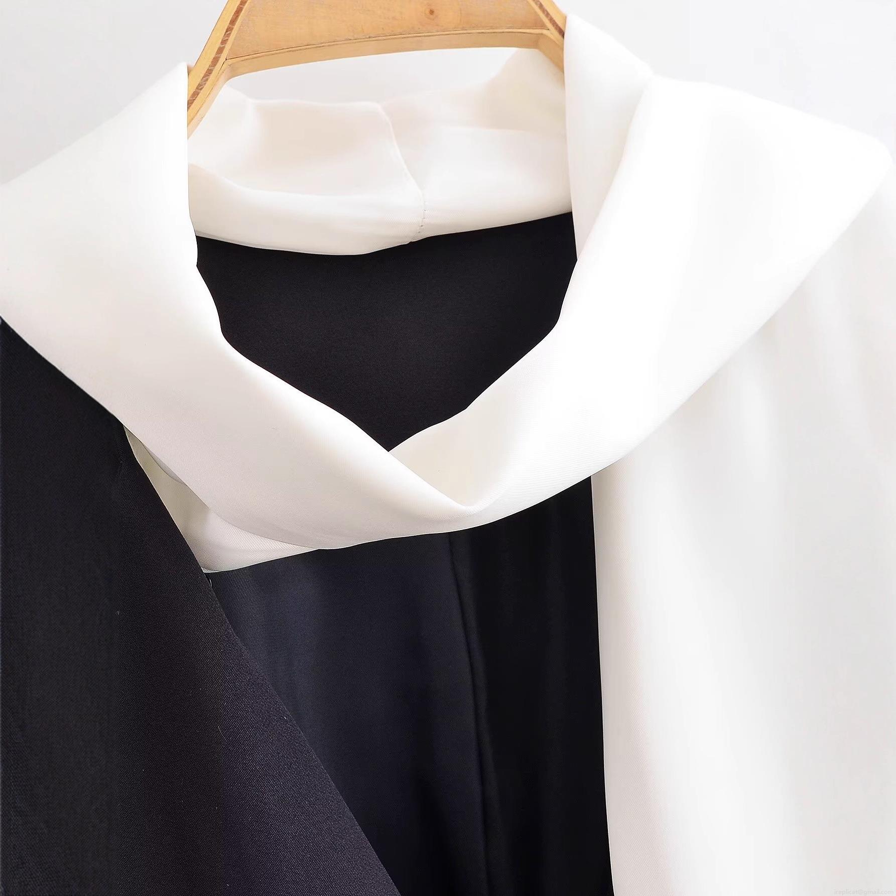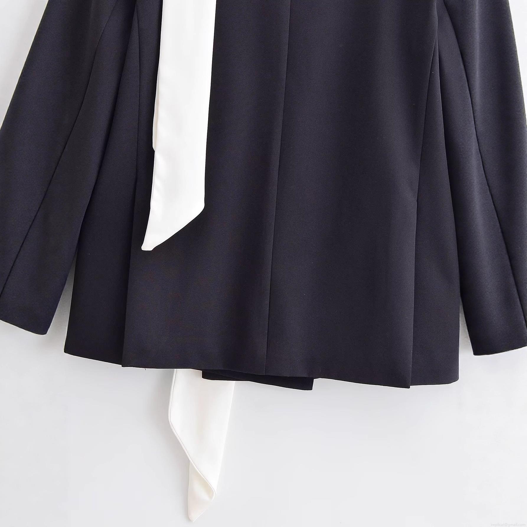 • Women's Loose Minimalist Contrast Scarf Decor Blazer Jacket 100% Polyester Long Sleeve Suit Collar Business Casual Outerwear Street Style Coat for Office Work