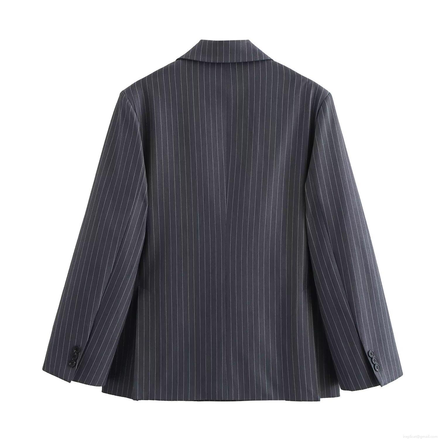 • Women's Loose Striped Blazer Double Breasted Suit Jacket Polyester Notched Lapel Long Sleeve Casual Office Business Streetwear Outwear
