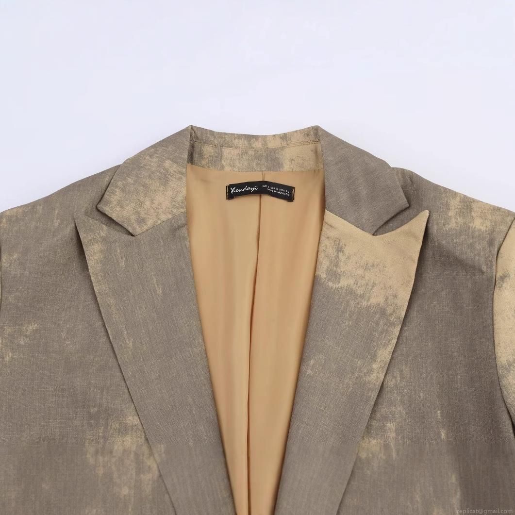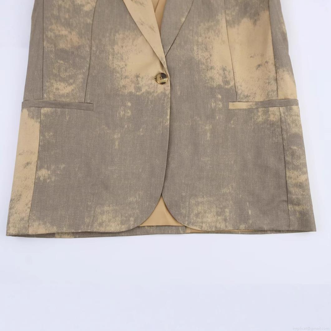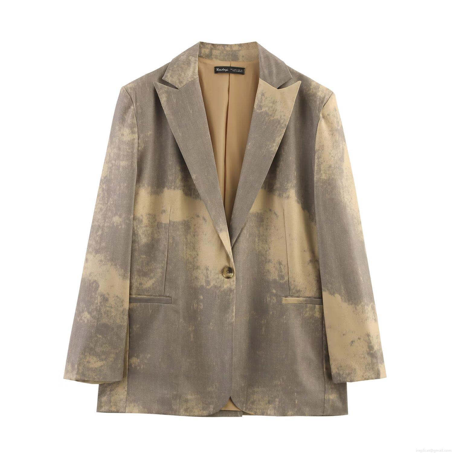• Women's Minimalist Tie-Dye Print Blazer Jacket Polyester Long Sleeve Single Button Lapel Casual Fashion Office Outerwear Brown Grey