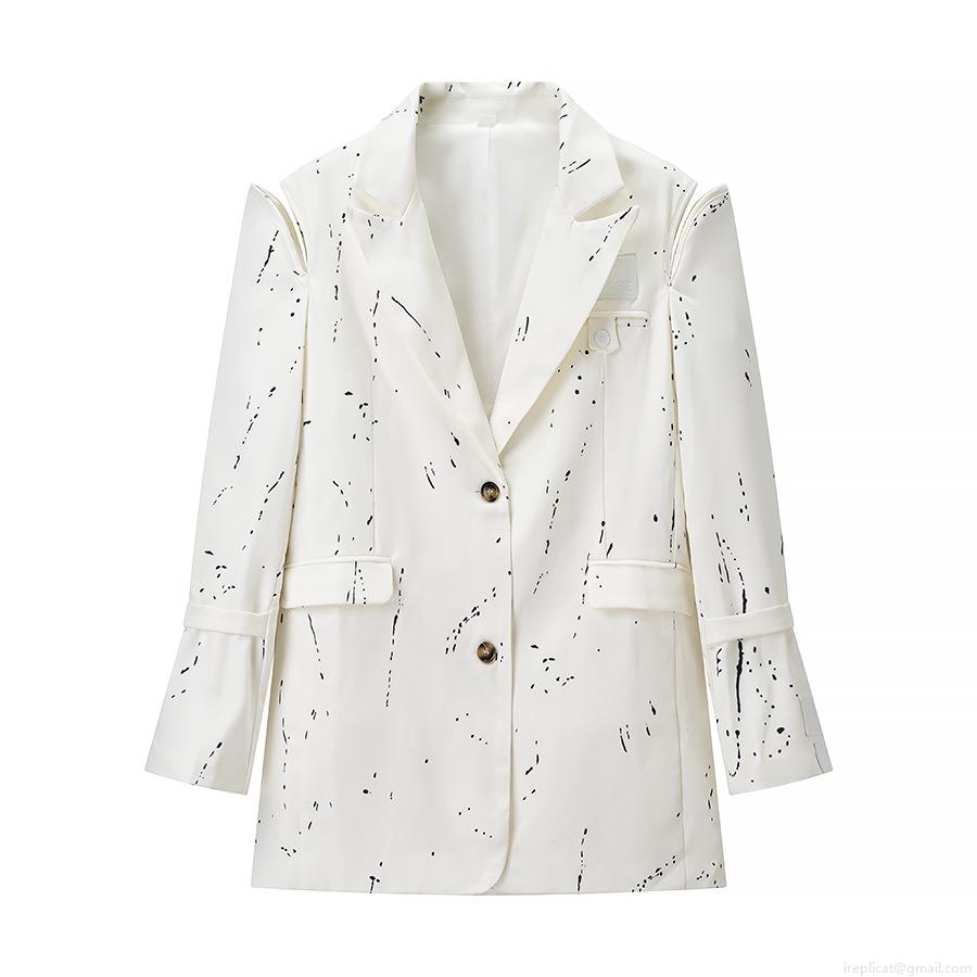 • Women's Modern Splash Ink Graffiti Print Blazer Jacket Long Sleeve Shoulder Cut-out V-Neck Button Up Suit Outwear For Daily Party Office