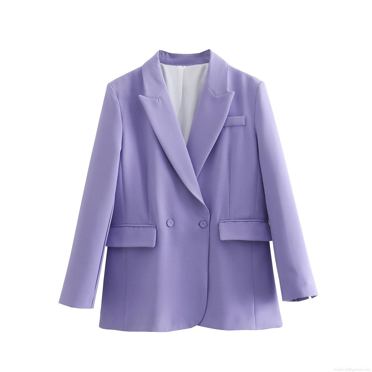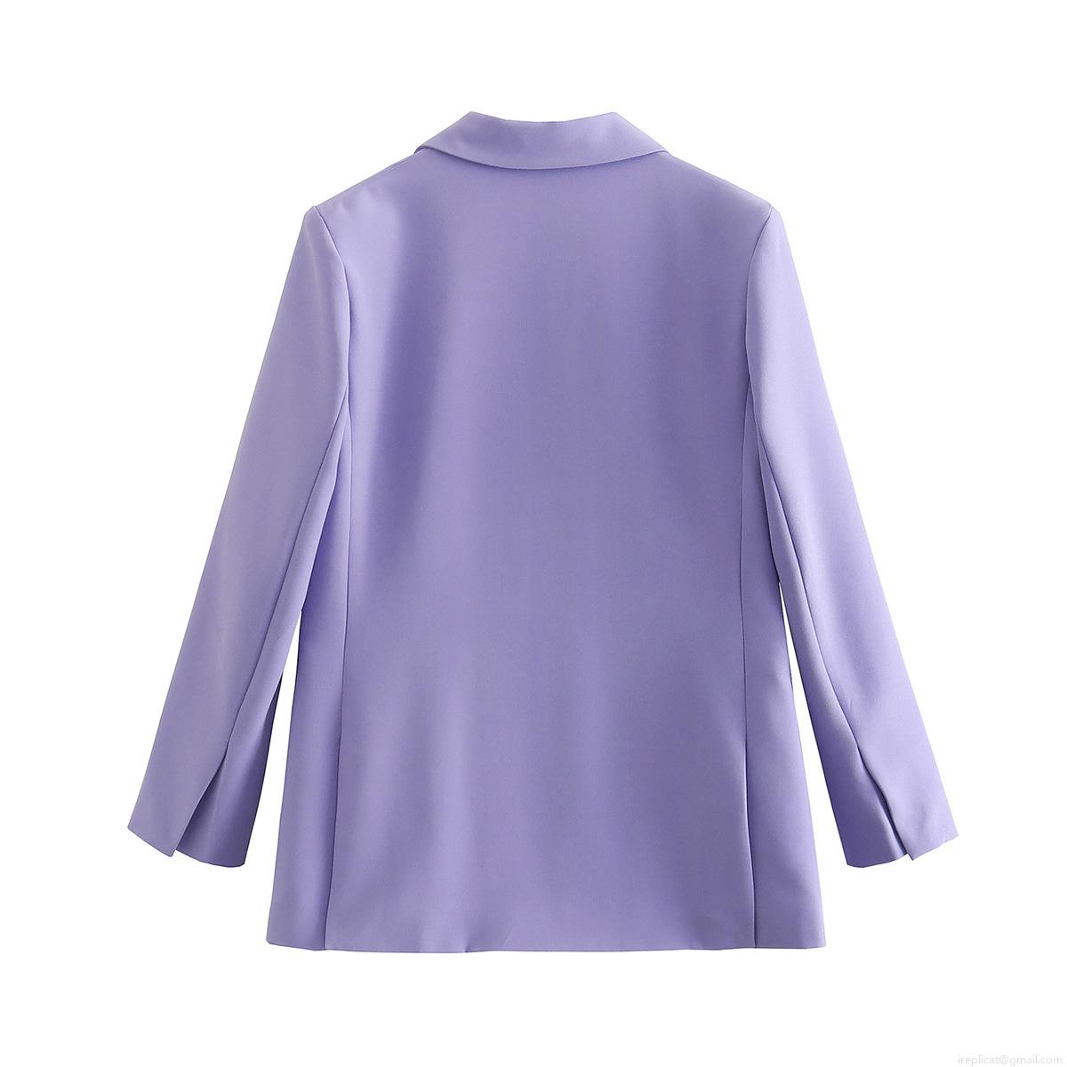 • Women's Oversized Solid Purple Blazer Jacket Casual Loose Lapel Long Sleeve Suit Coat Polyester Spandex Office Commuter Outerwear for Ladies
