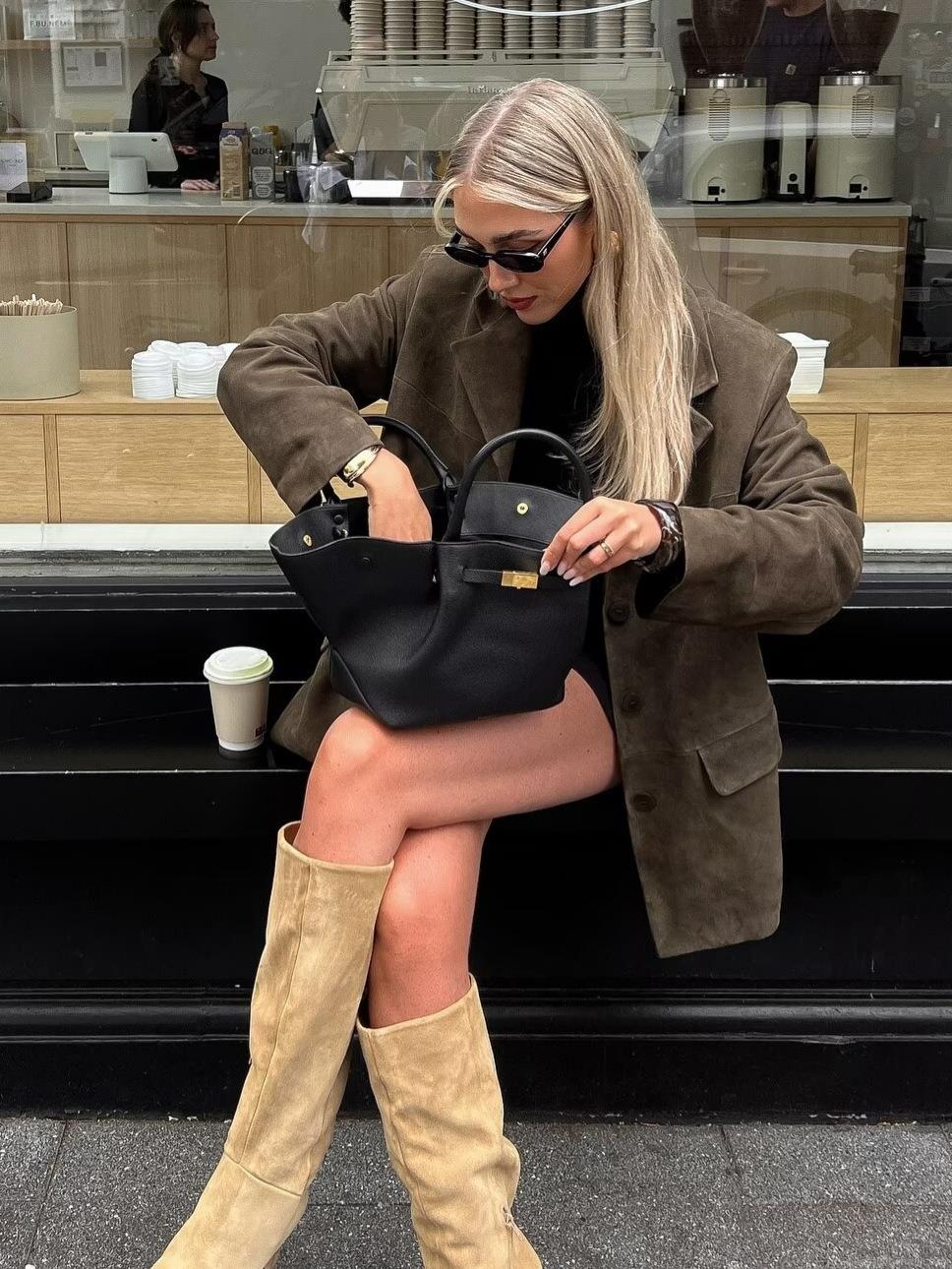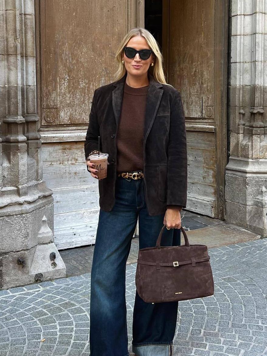 • Women's Oversized Suede Blazer Jacket Single Breasted Faux Suede Solid Color Lapel Outerwear Streetwear Casual Long Sleeve Mid Length Fashion Blazer