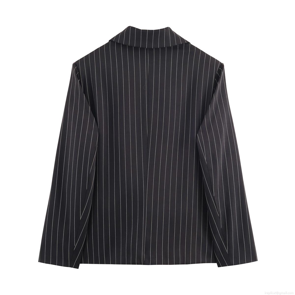 Women's Pinstripe Blazer Jacket Polyester Long Sleeve Single Button Loose Fit Office Suit Outerwear for Business Lady Streetwear Style