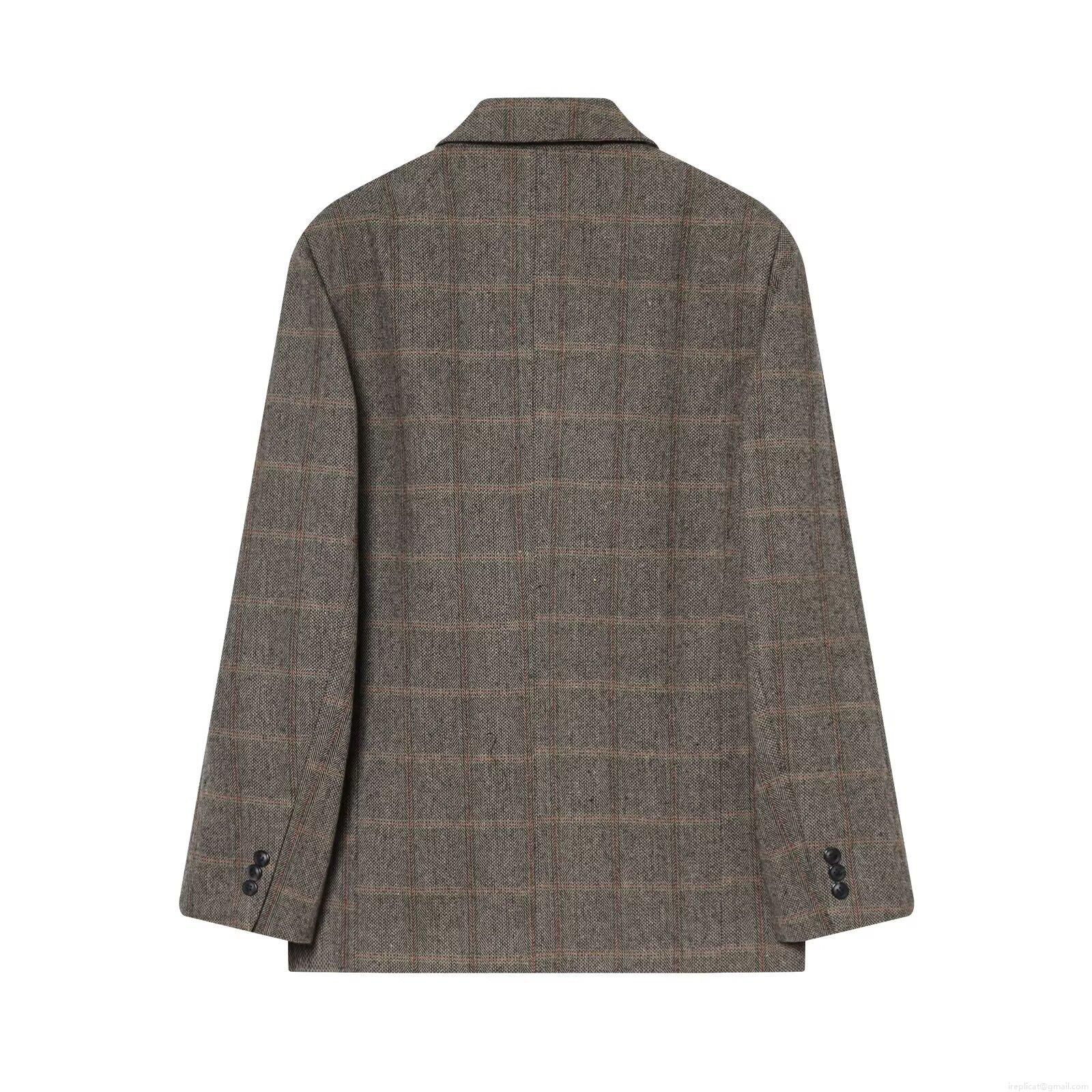 Herringbone, Checkered Pattern, Buttons, Single-breasted, Window Lattice