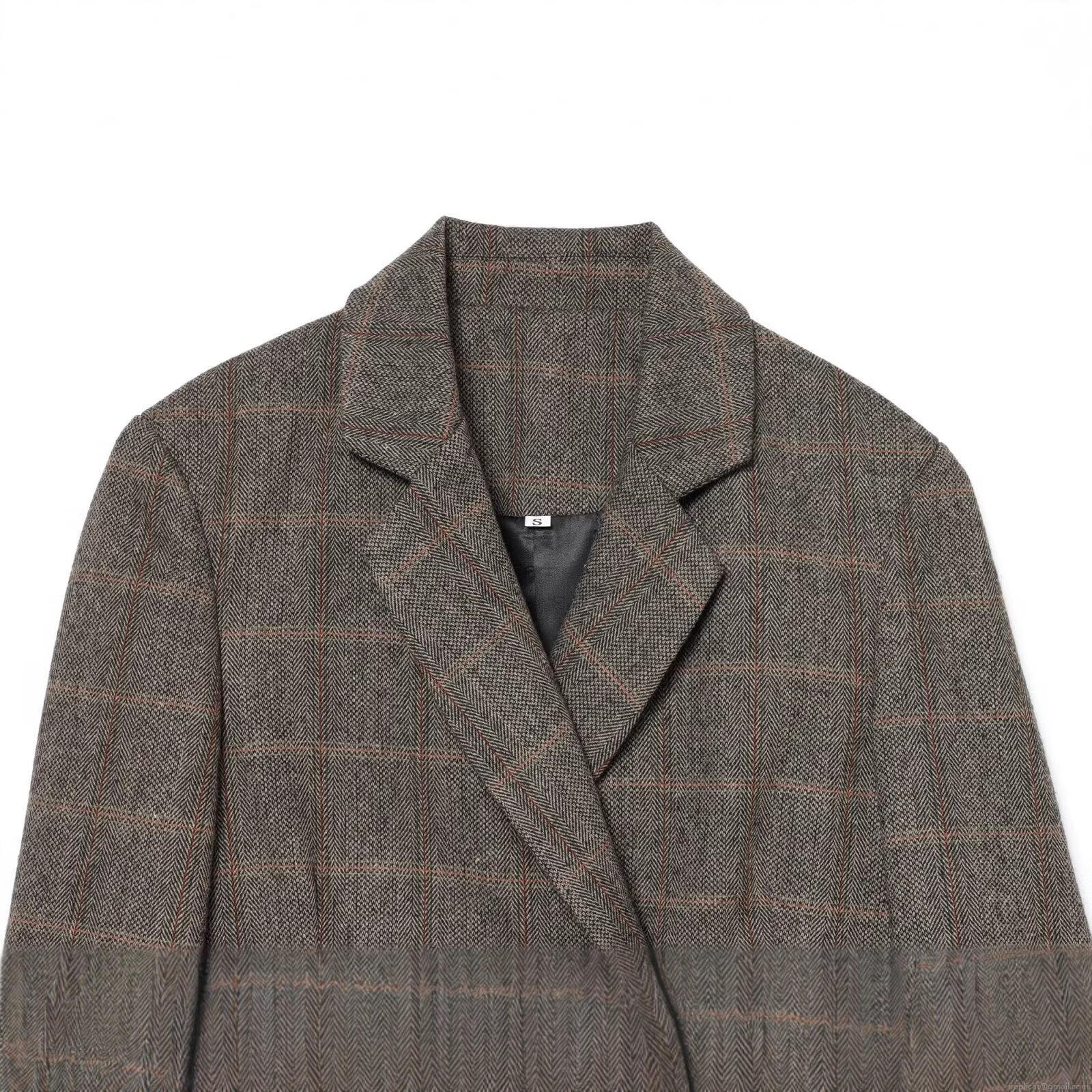 • Women's Plaid Blazer Herringbone Tweed Jacket Single Breasted V-Neck Loose Fit Commuter Outerwear For Office Lady Elegant Casual Coat
