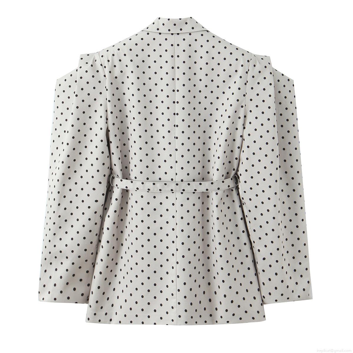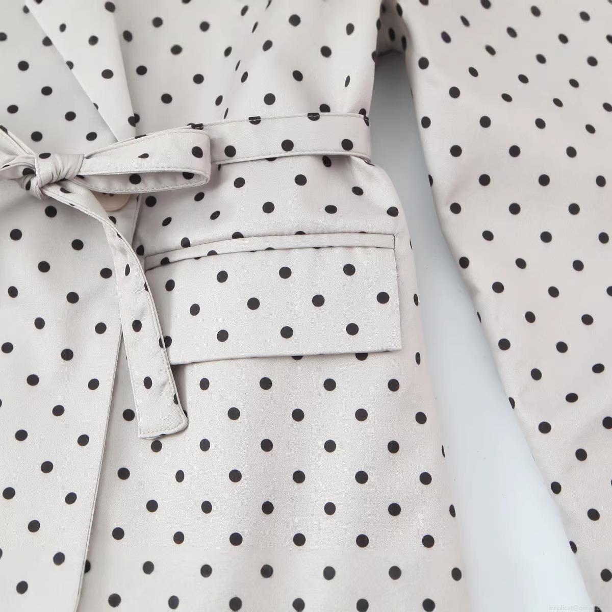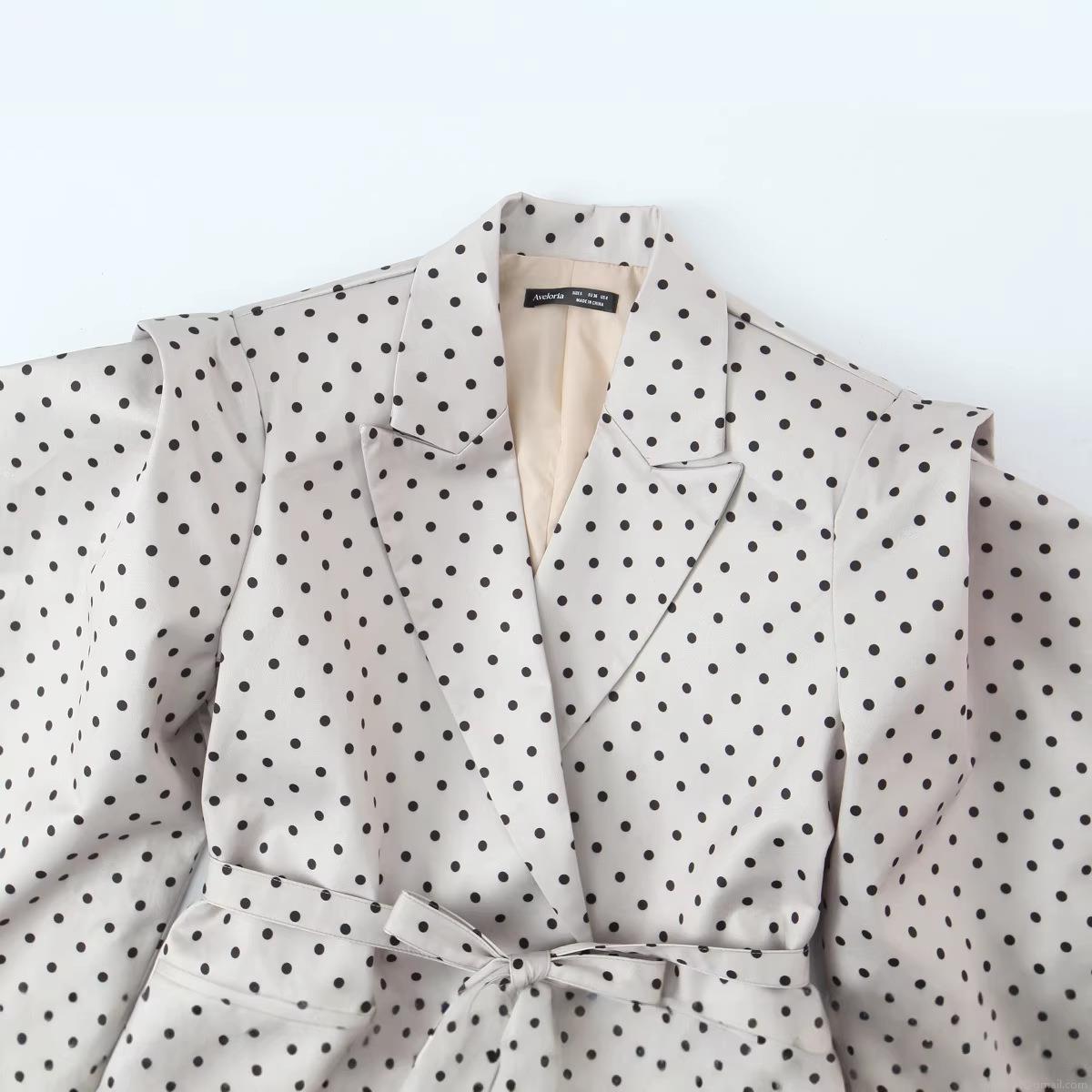 • Women's Polka Dot Blazer Jacket Retro Tie Waist Lapel Long Sleeve Polyester Coat For Office Daily Fashion Streetwear Autumn Outerwear