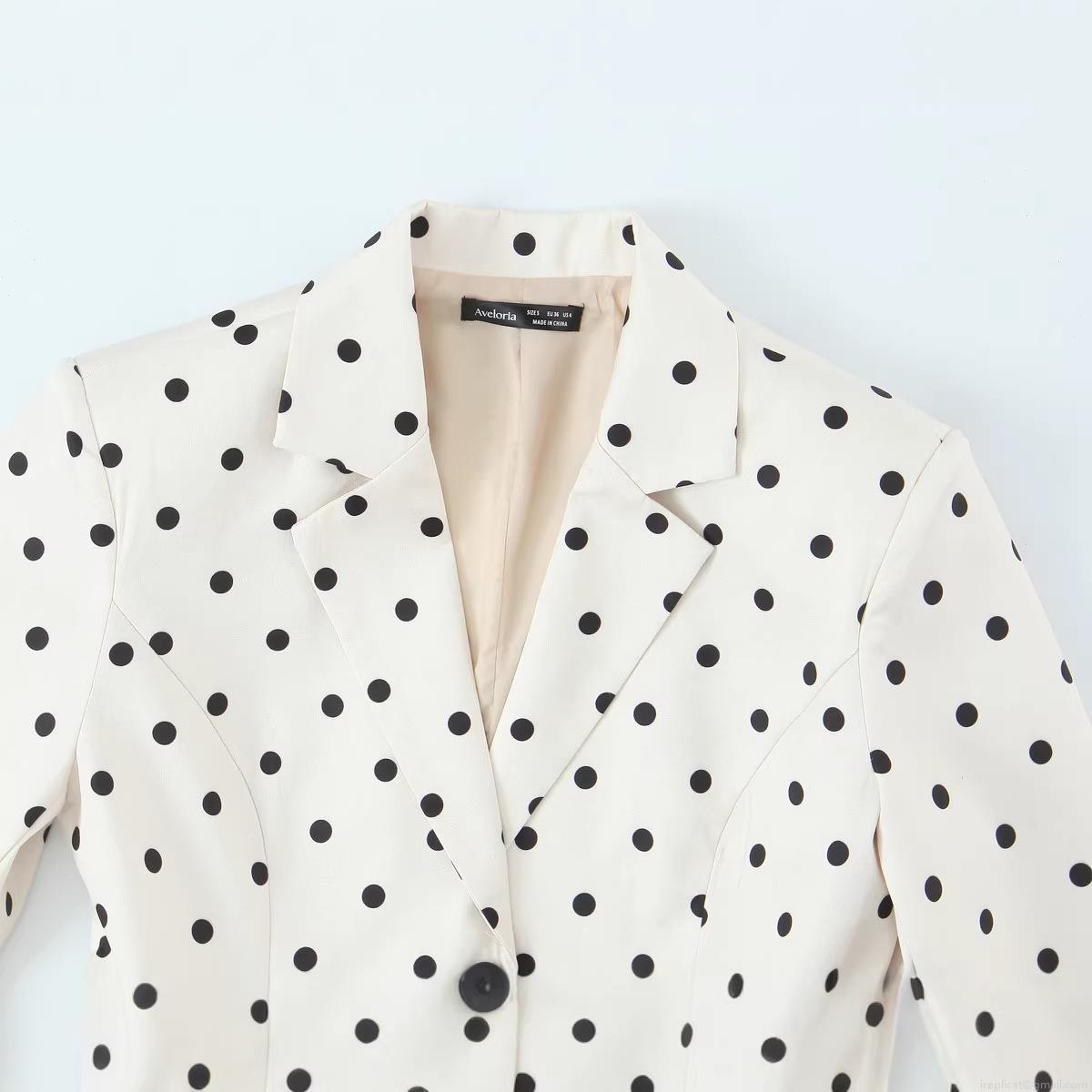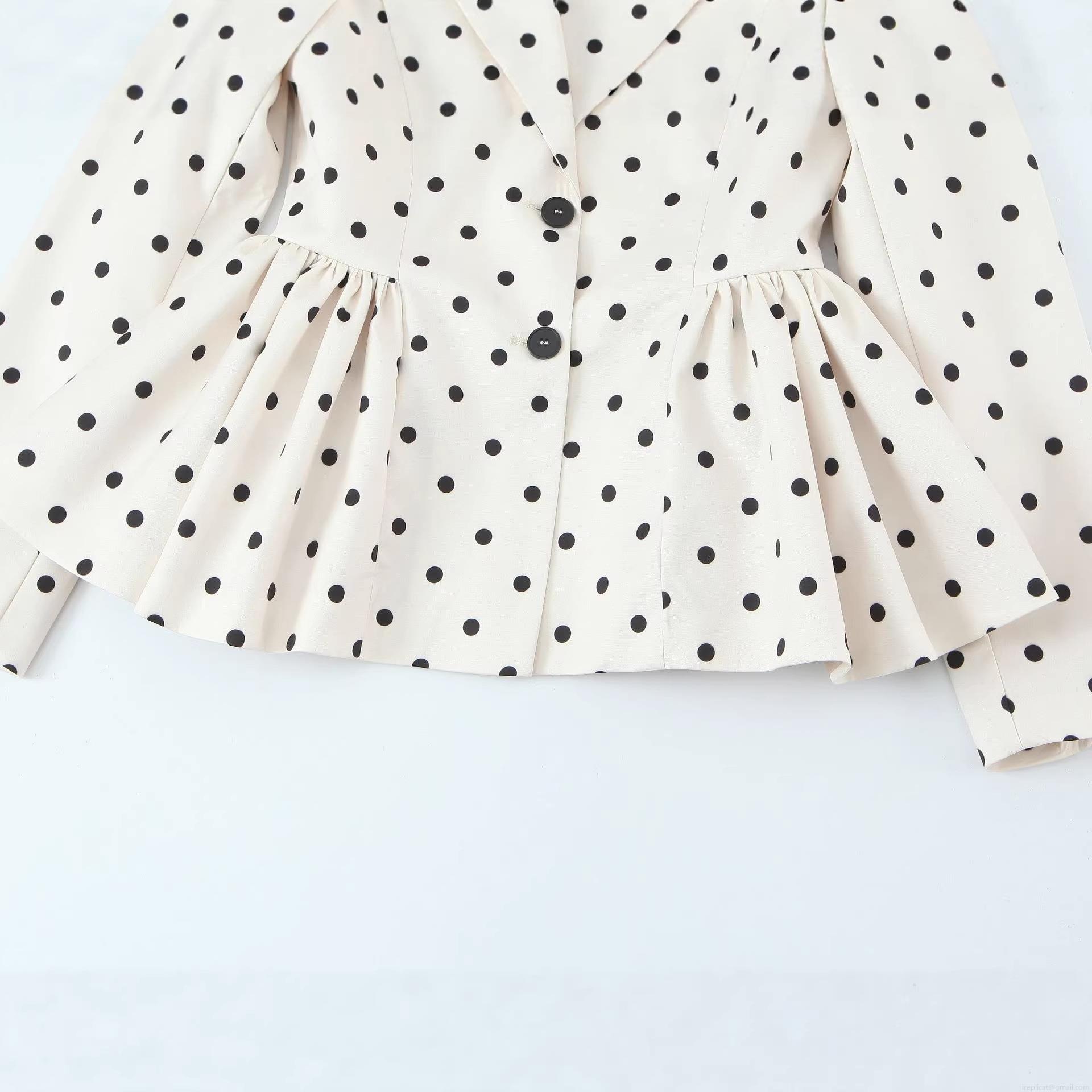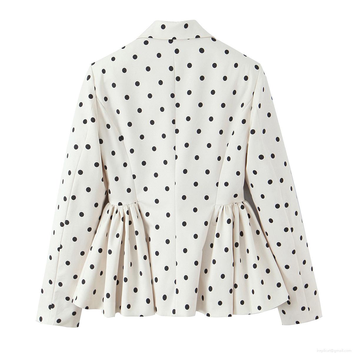 • Women's Polka Dot Peplum Blazer Polyester Long Sleeve Lapel Ruffle Hem Jacket Vintage European Streetwear Slim Fit Single Breasted Suit Coat For Party Office