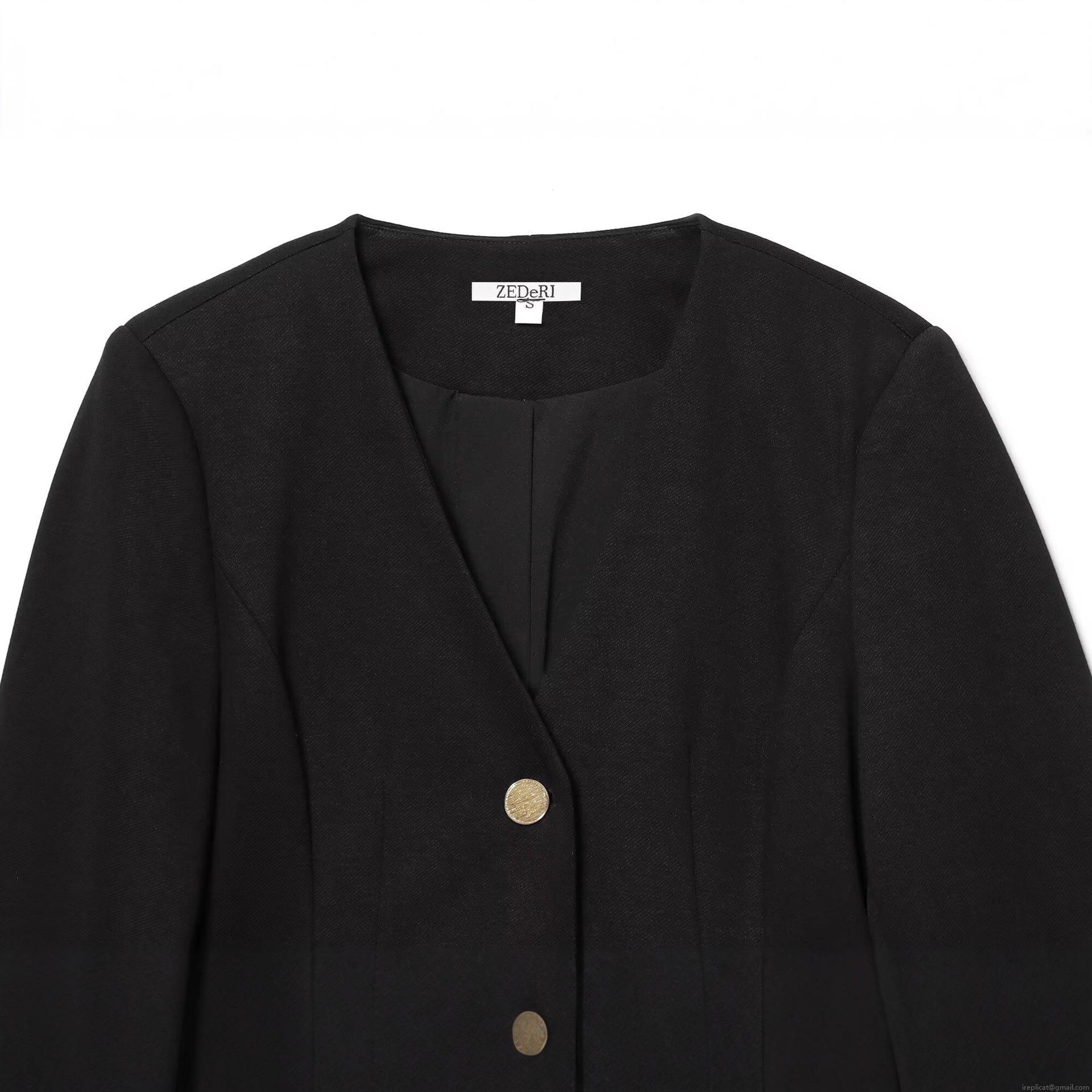 Solid Color, Splice, Shoulder Pads, Single-breasted, Gold Buttons, Flap Pocket