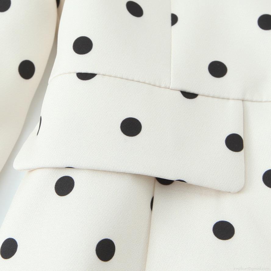 • Women's Retro Polka Dot Round Neck Blazer Jacket With Rhinestone Buttons Long Sleeve Polyester Commuting Outerwear Streetwear Casual Blazer For Women