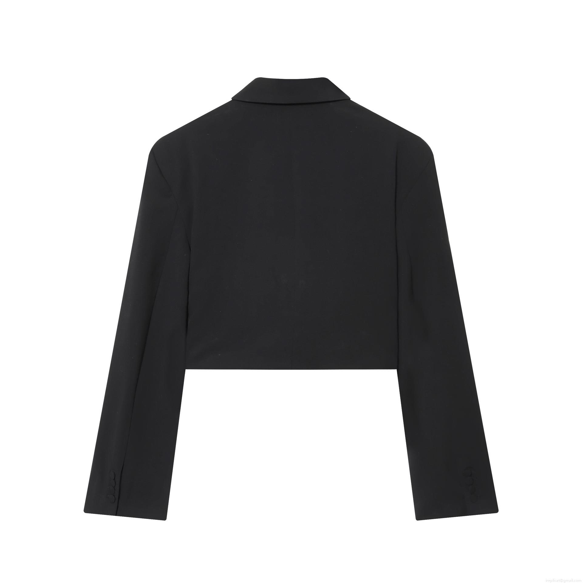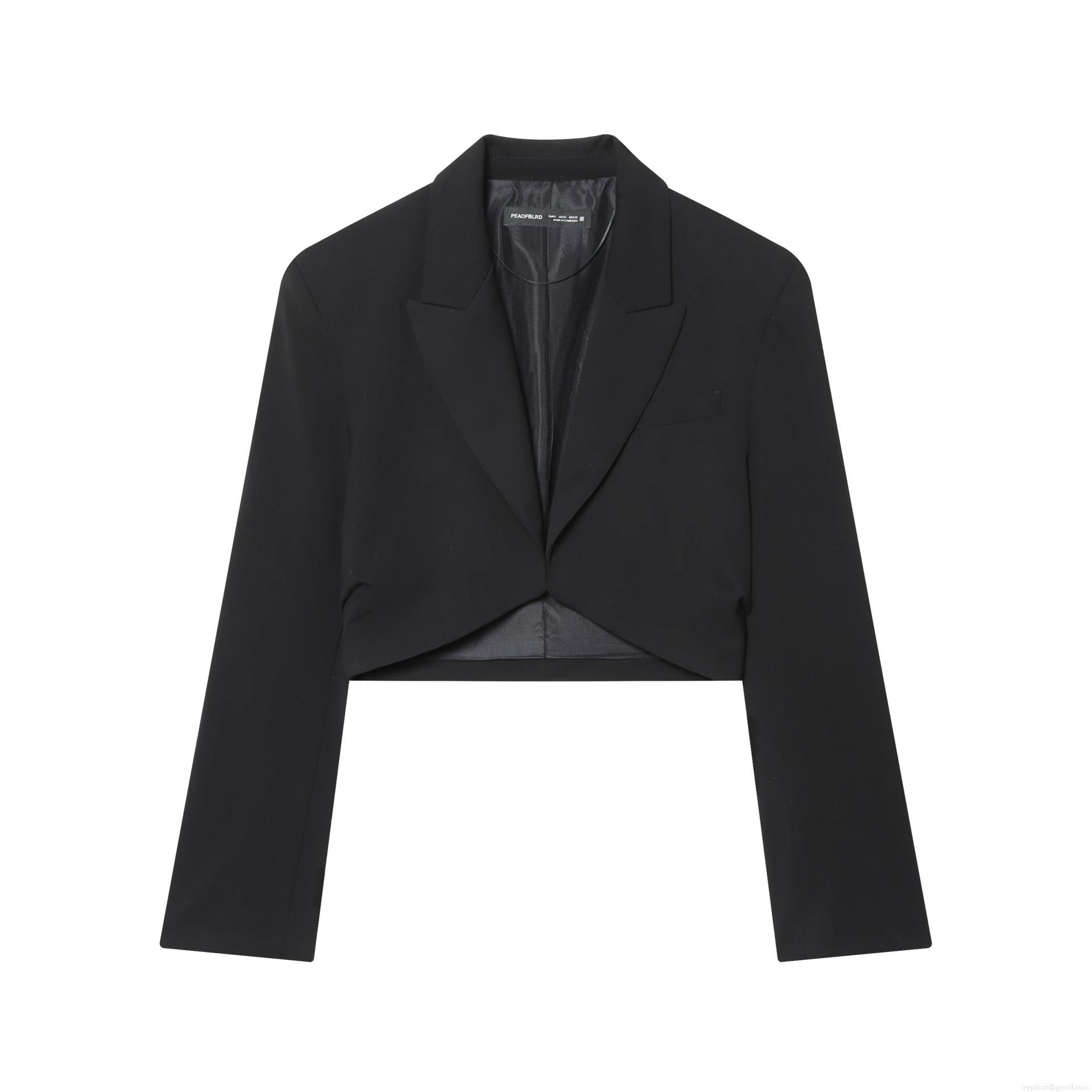 • Women's Short Blazer Jacket With Padded Shoulders Pleated Open Front V Neck Long Sleeve Acrylic Woven Suit Coat For Office Business Casual Workwear