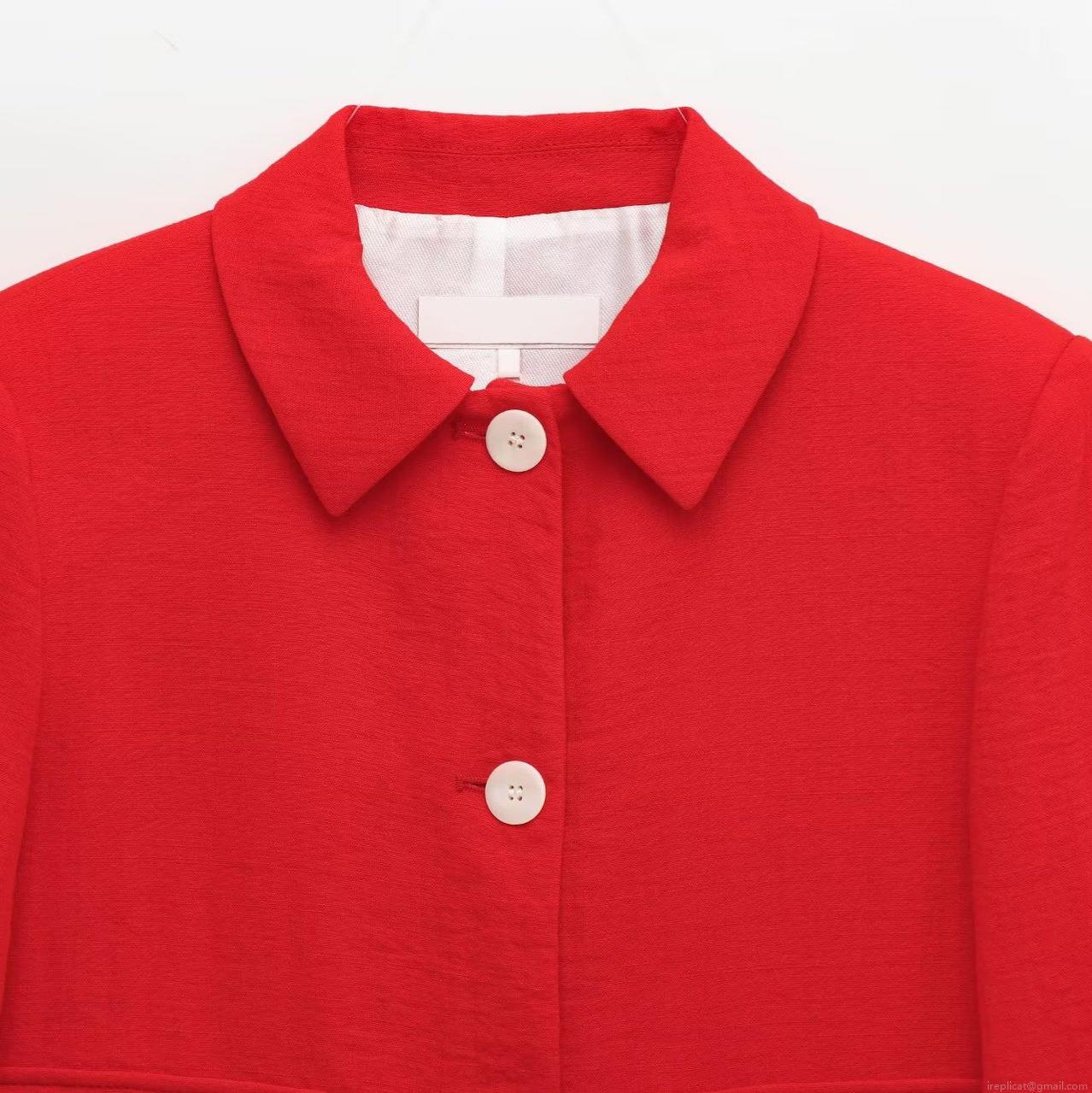 Solid Color, Shoulder Pads, Button Decoration, Flap Pocket, Short Cut