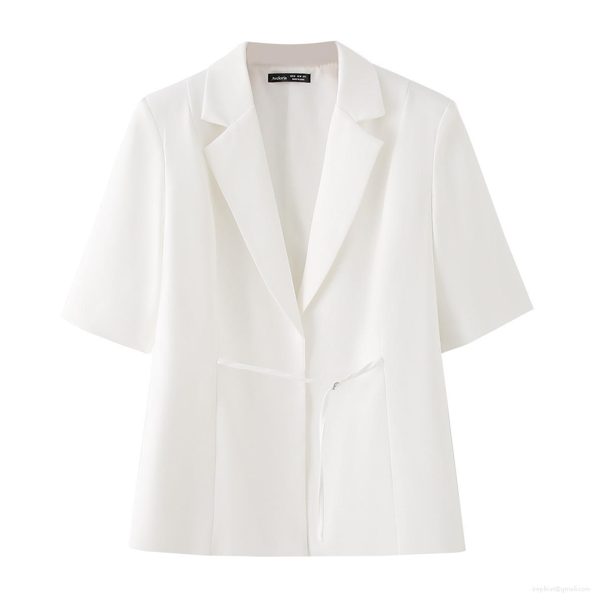 • Women's Short Sleeve Blazer Jacket Polyester Slim Fit Belted Waist Suit Lapel Office Lady Solid Color Fashion Outerwear