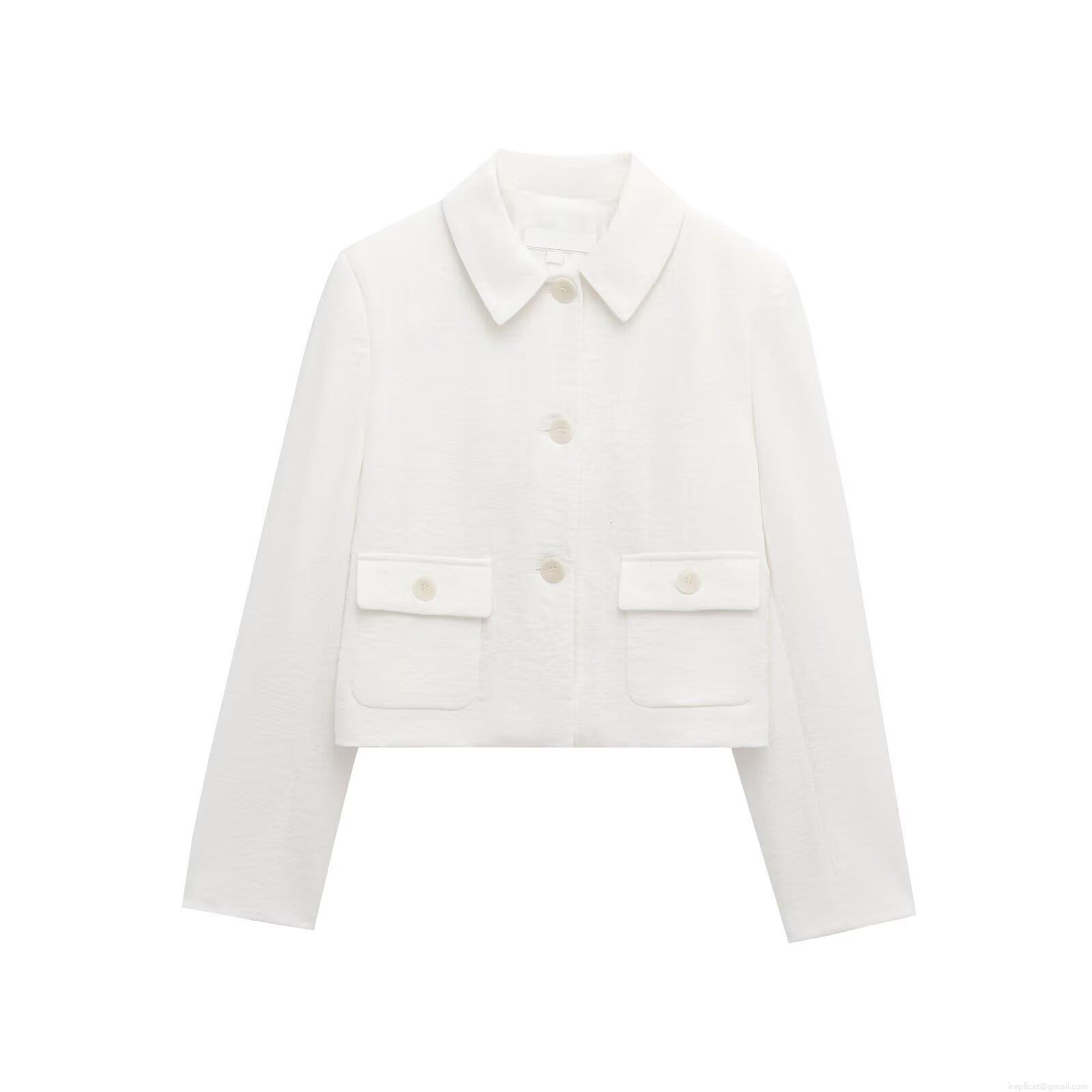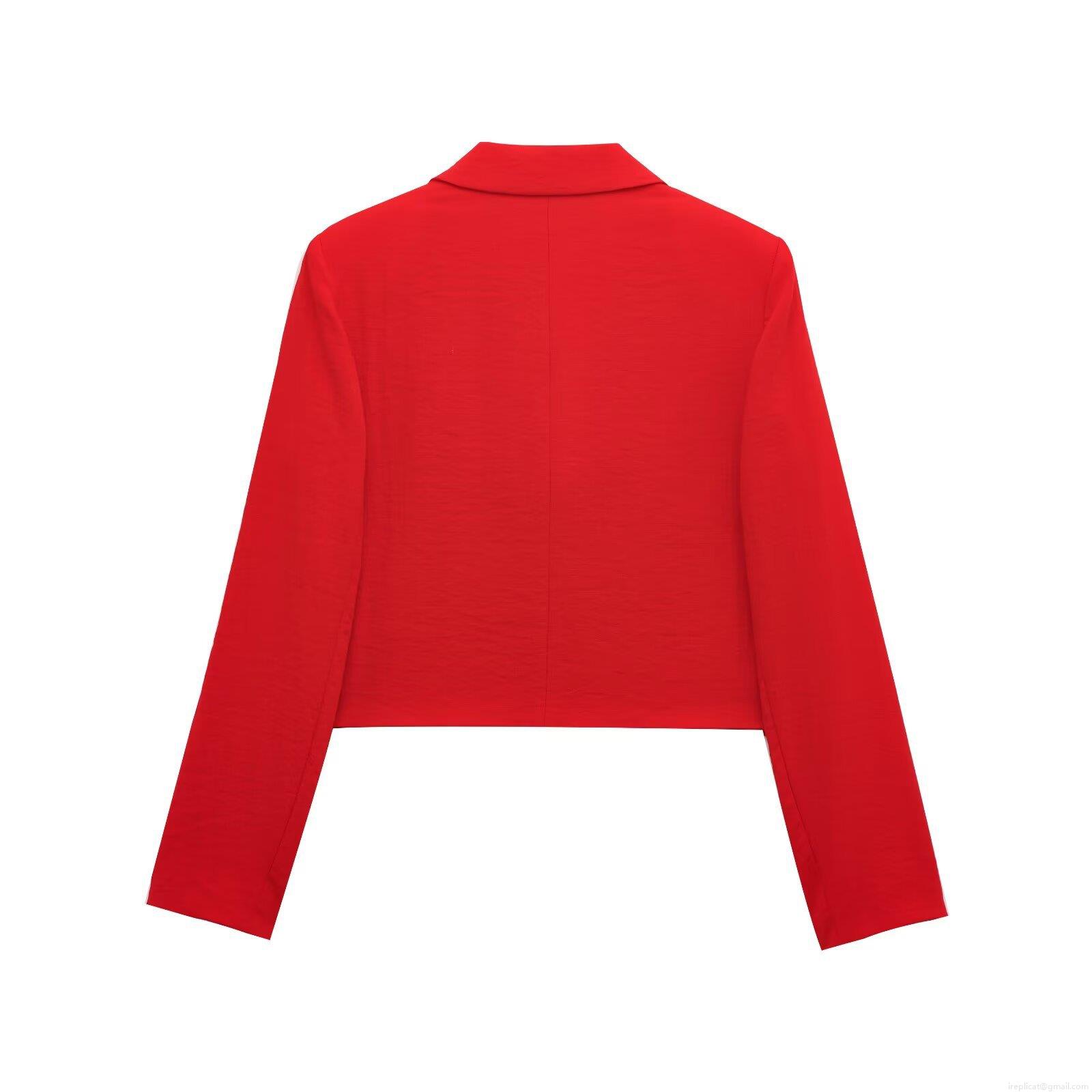 • Women's Shoulder Pad Blazer Short Faux Linen Jacket Single Breasted V-Neck Outerwear Casual Vacation Style Solid Color Long Sleeve Top