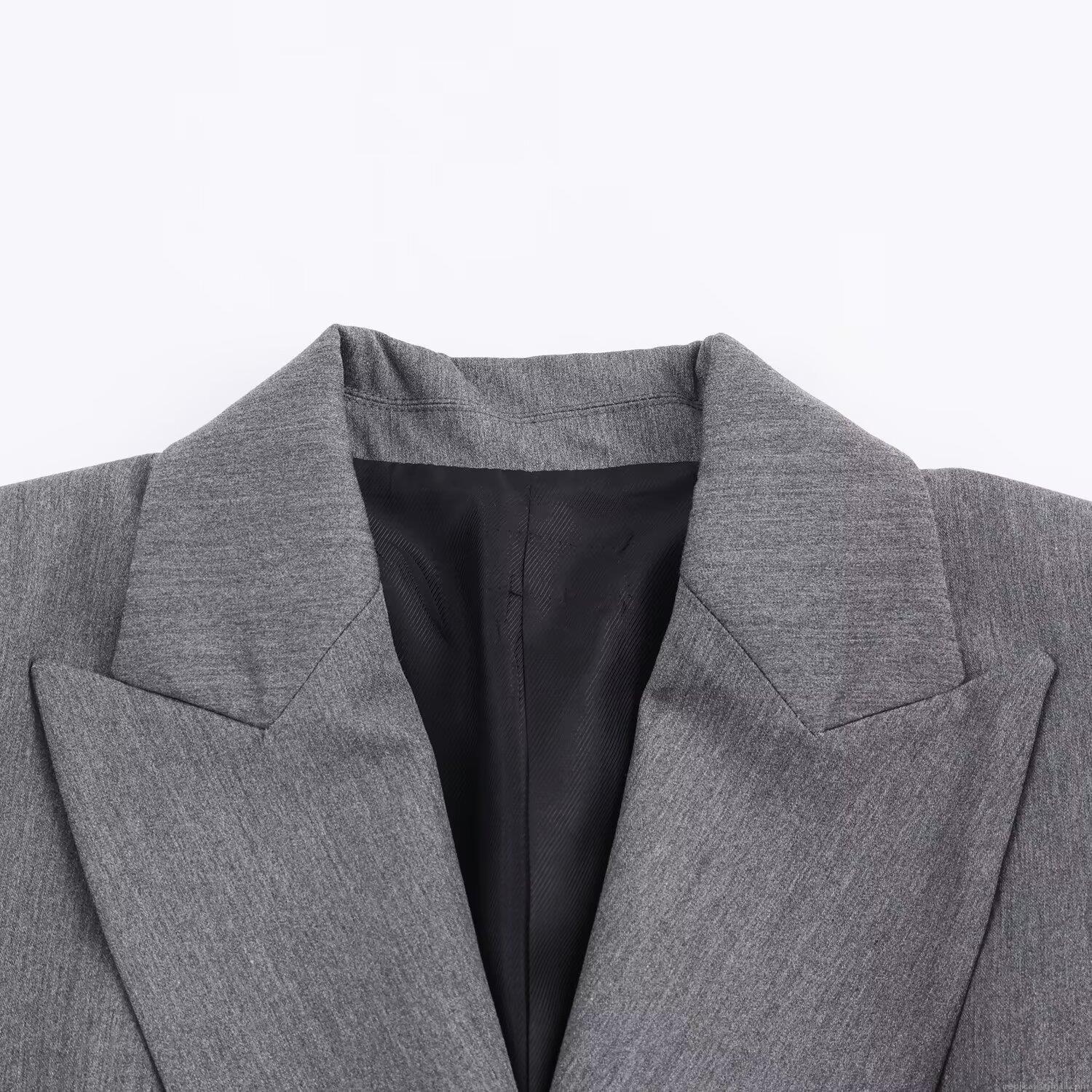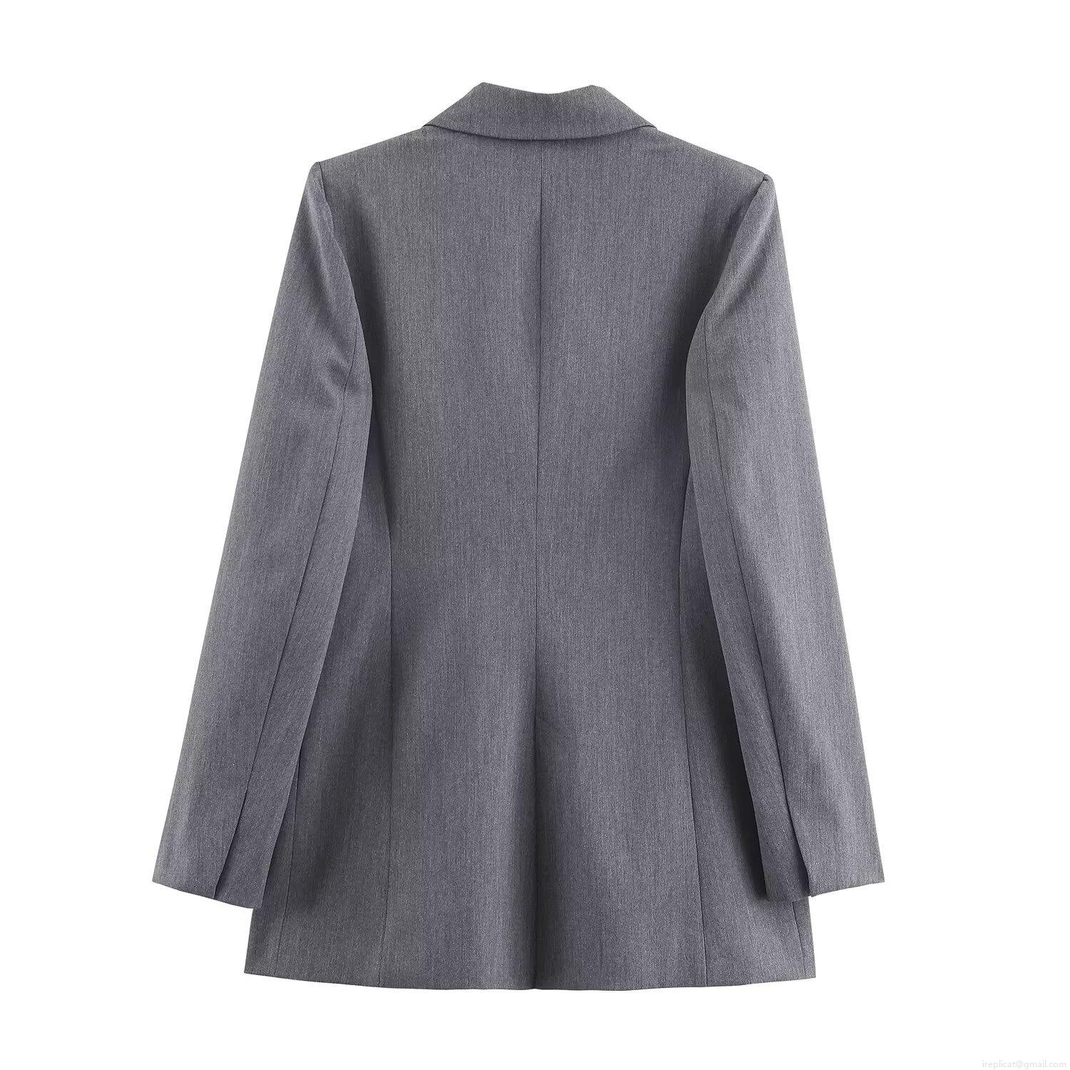 • Women's Slim Fit Double Breasted Blazer Jacket Grey Polyester Professional Office Wear Elegant Autumn Suit Outerwear