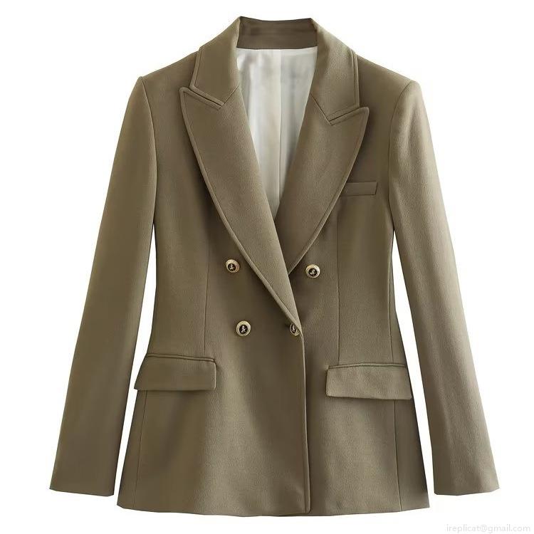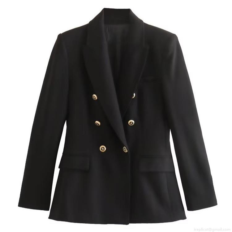 Women's Slim Fit Double Breasted Blazer Jacket With Gold Metal Buttons Professional Office Polyester Suit Coat For Casual Daily Streetwear