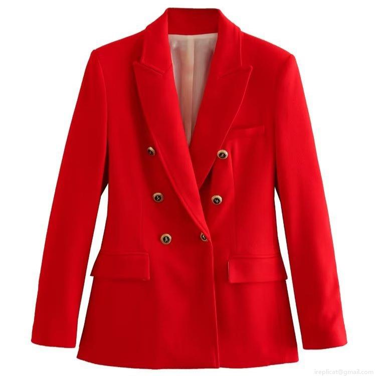 • Women's Slim Fit Double Breasted Blazer Jacket With Gold Metal Buttons Professional Office Polyester Suit Coat For Casual Daily Streetwear