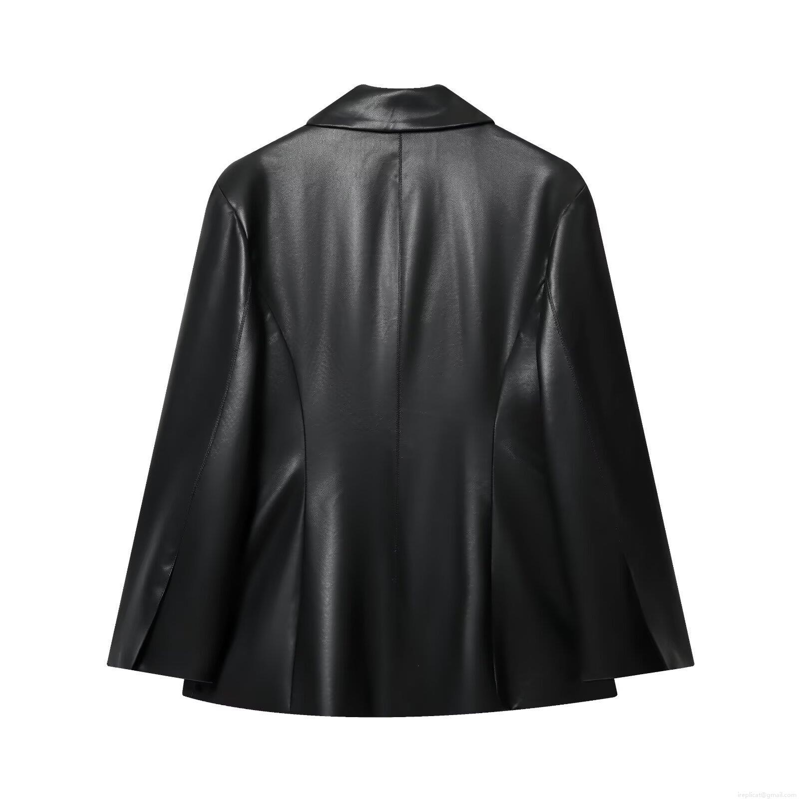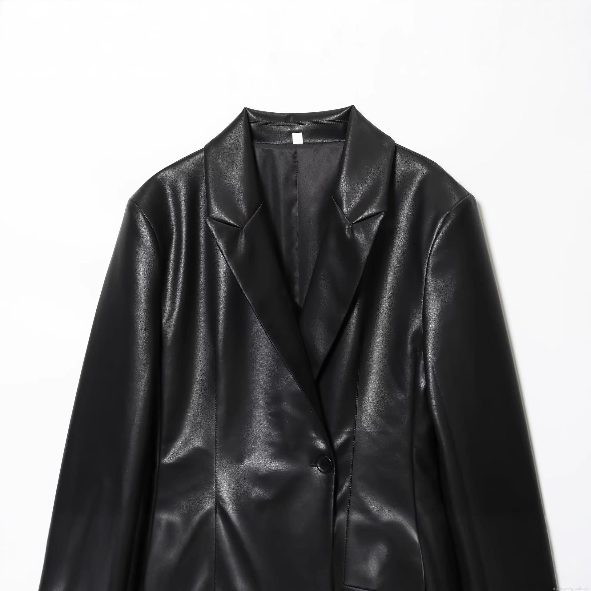 • Women's Slim Fit Faux Leather Blazer Jacket Elegant Single Breasted PU Leather Lapel Long Sleeve Suit Jacket For Casual Office Party Fashion Outerwear