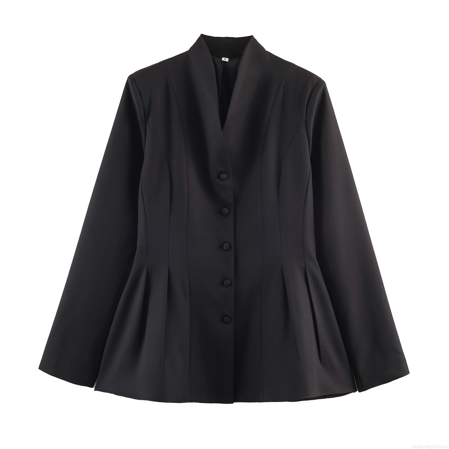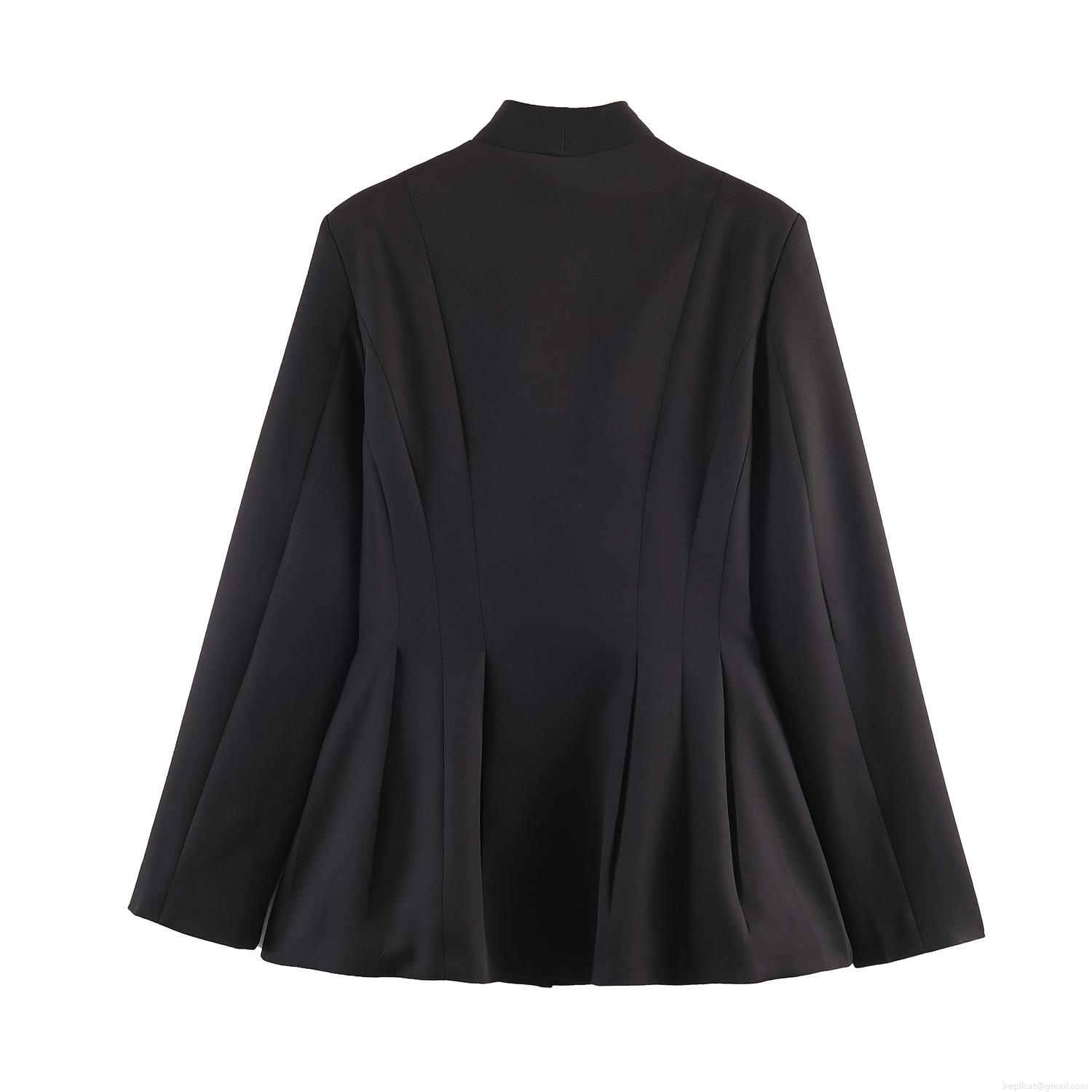 • Women's Slim Fit Polyester Blazer Jacket Stand Collar Pleated Hem Ruffle Peplum Blazer Office Lady Long Sleeve Single Breasted Casual Outerwear