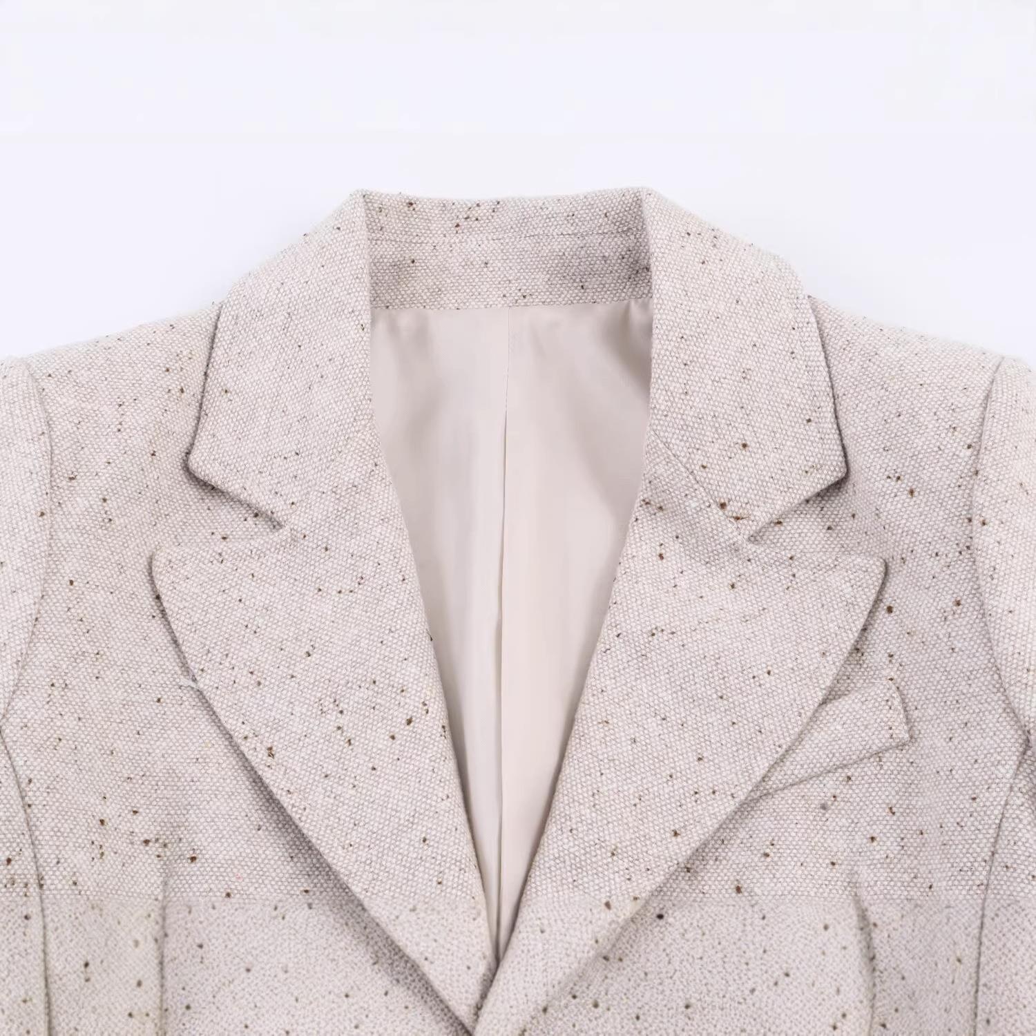 • Women's Slim Fit Tweed Blazer Apricot Oatmeal Texture Notched Lapel Single Breasted Suit Jacket For Office Commute Elegant Ladies Outerwear