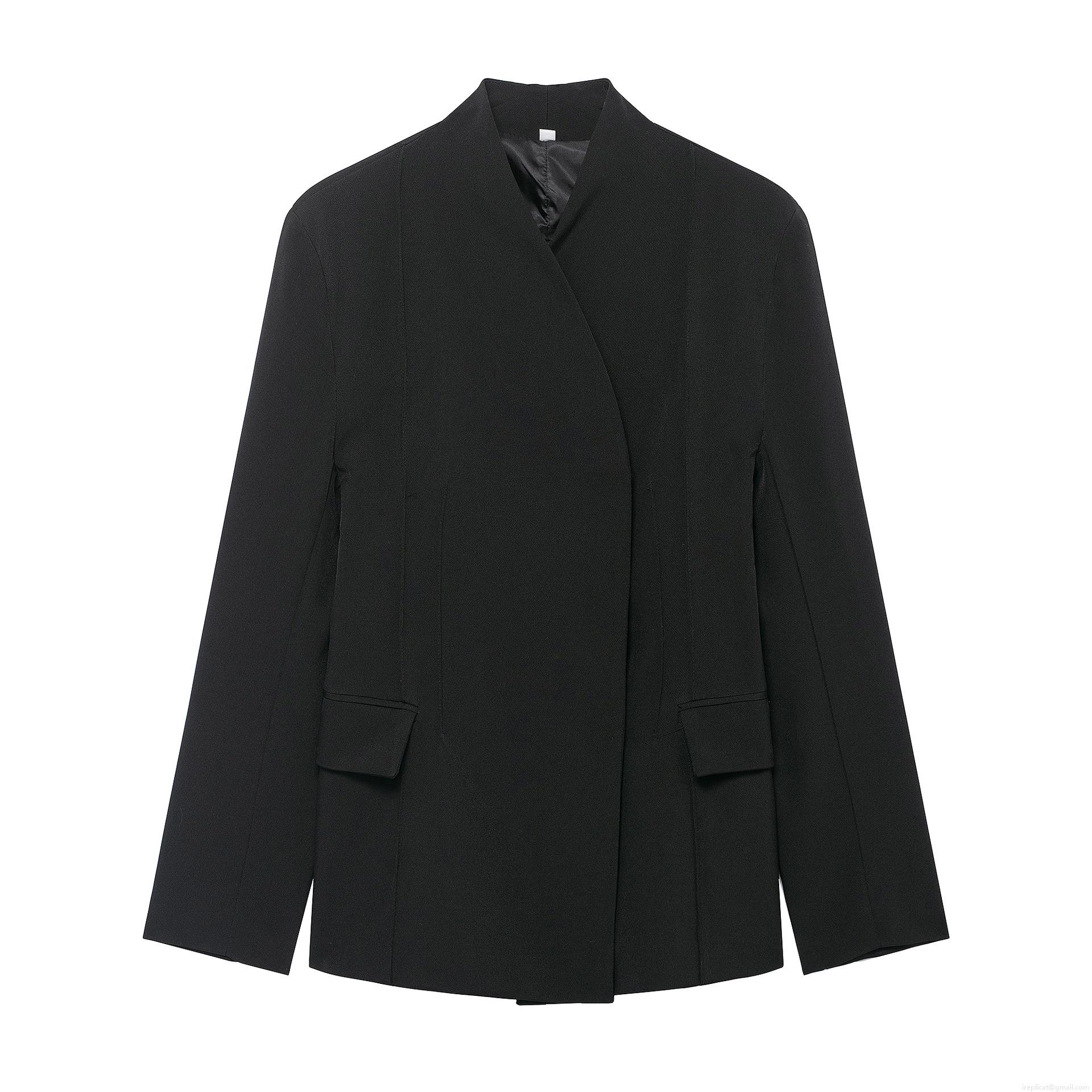 • Women's Solid Black Blazer Jacket 100% Polyester Notched Lapel Long Sleeve Slim Fit Suit Outerwear With Pockets Business Casual Streetwear For Autumn Winter