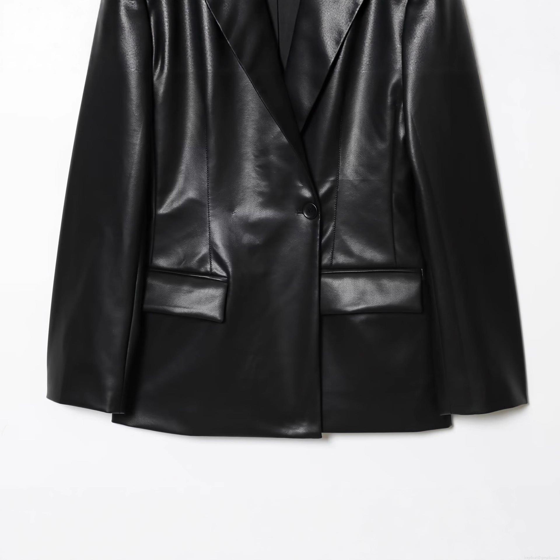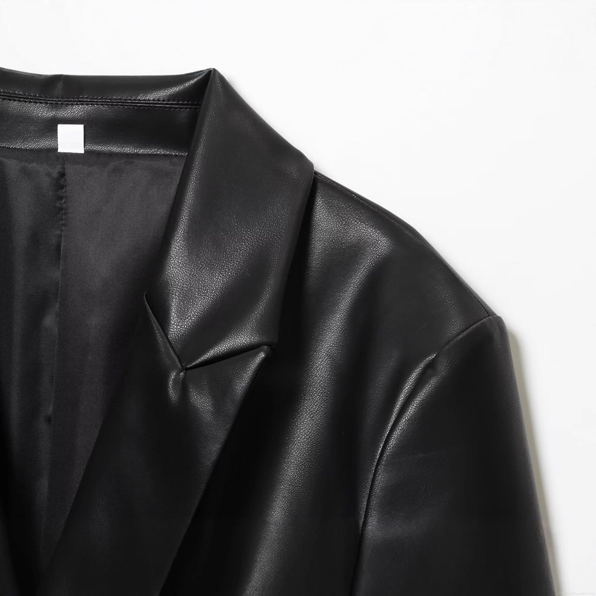 • Women's Solid Black PU Faux Leather Blazer Notched Lapel Single Breasted Long Sleeve Oversized Jacket With Pockets Fall Winter Streetwear Outerwear