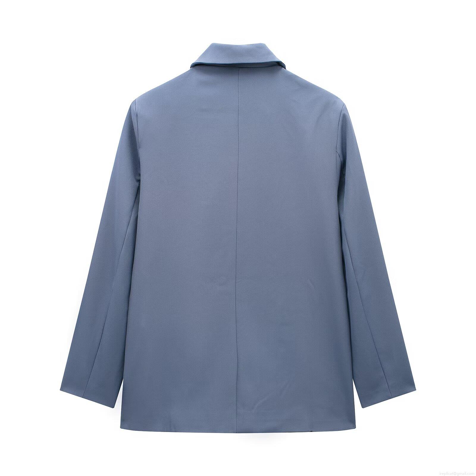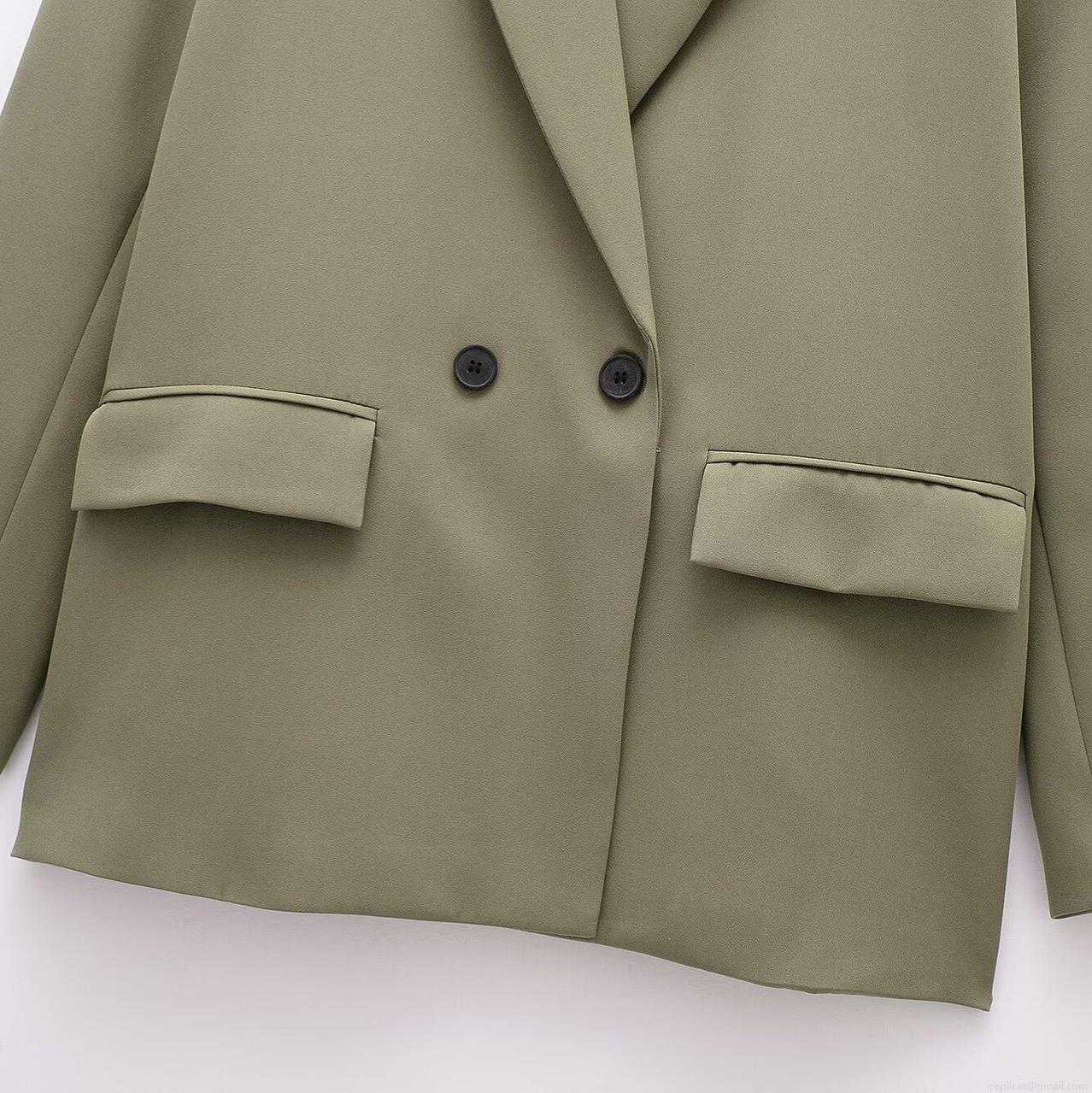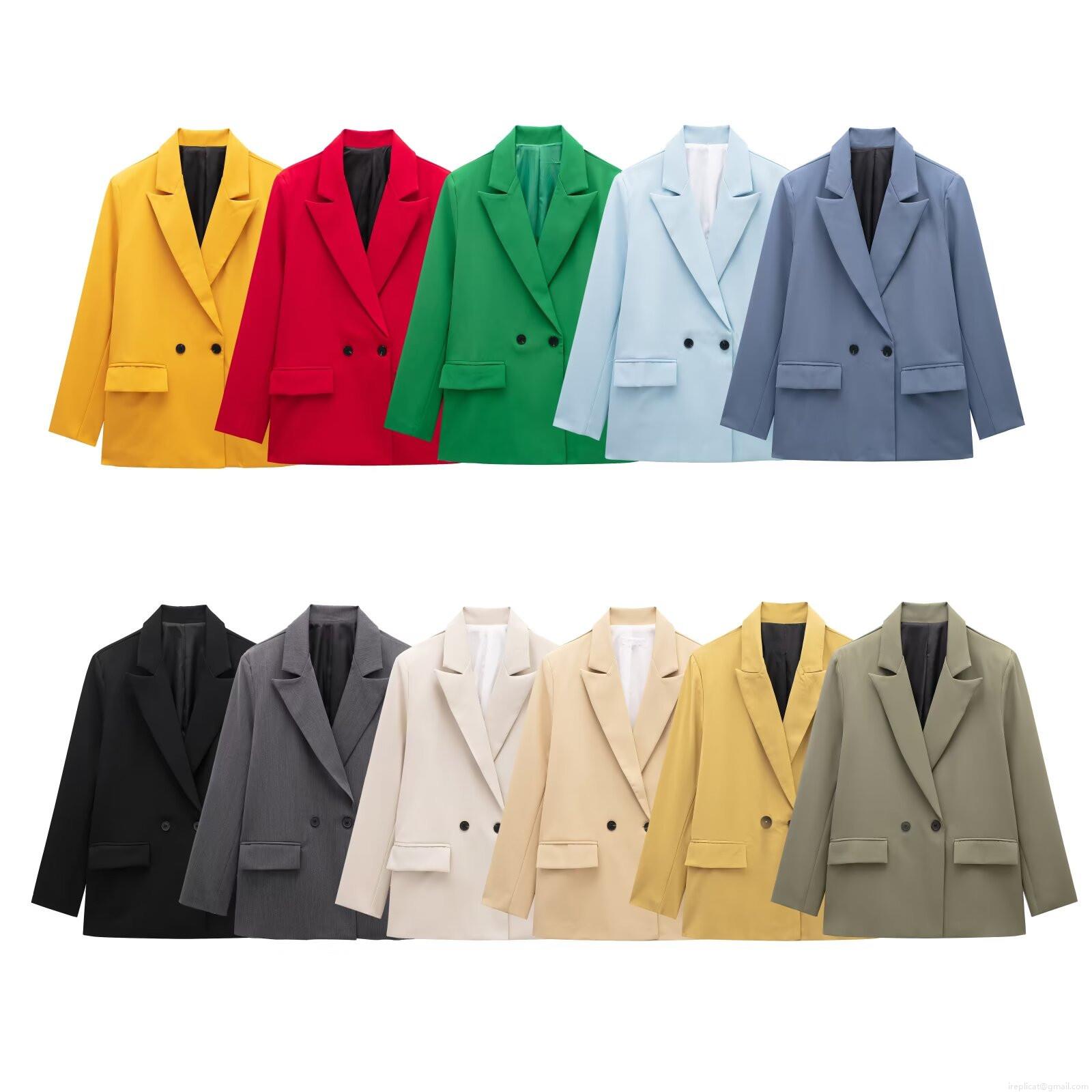 • Women's Solid Color Double-Breasted Blazer Jacket Notched Lapel Long Sleeve Loose Fit Casual Office Suit Jacket With Pockets 100% Polyester