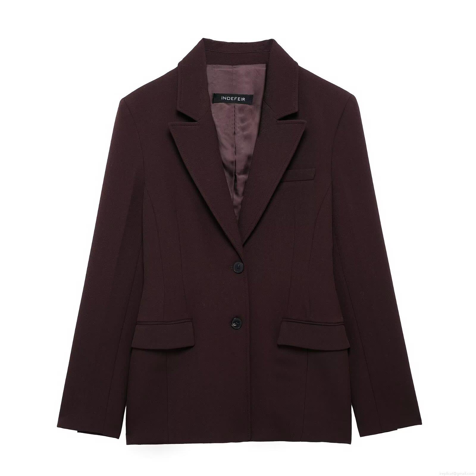 • Women's Solid Color Polyester Blazer Jacket Two Buttons Lapel Loose Fit Outerwear For Autumn Office Streetwear Fashion
