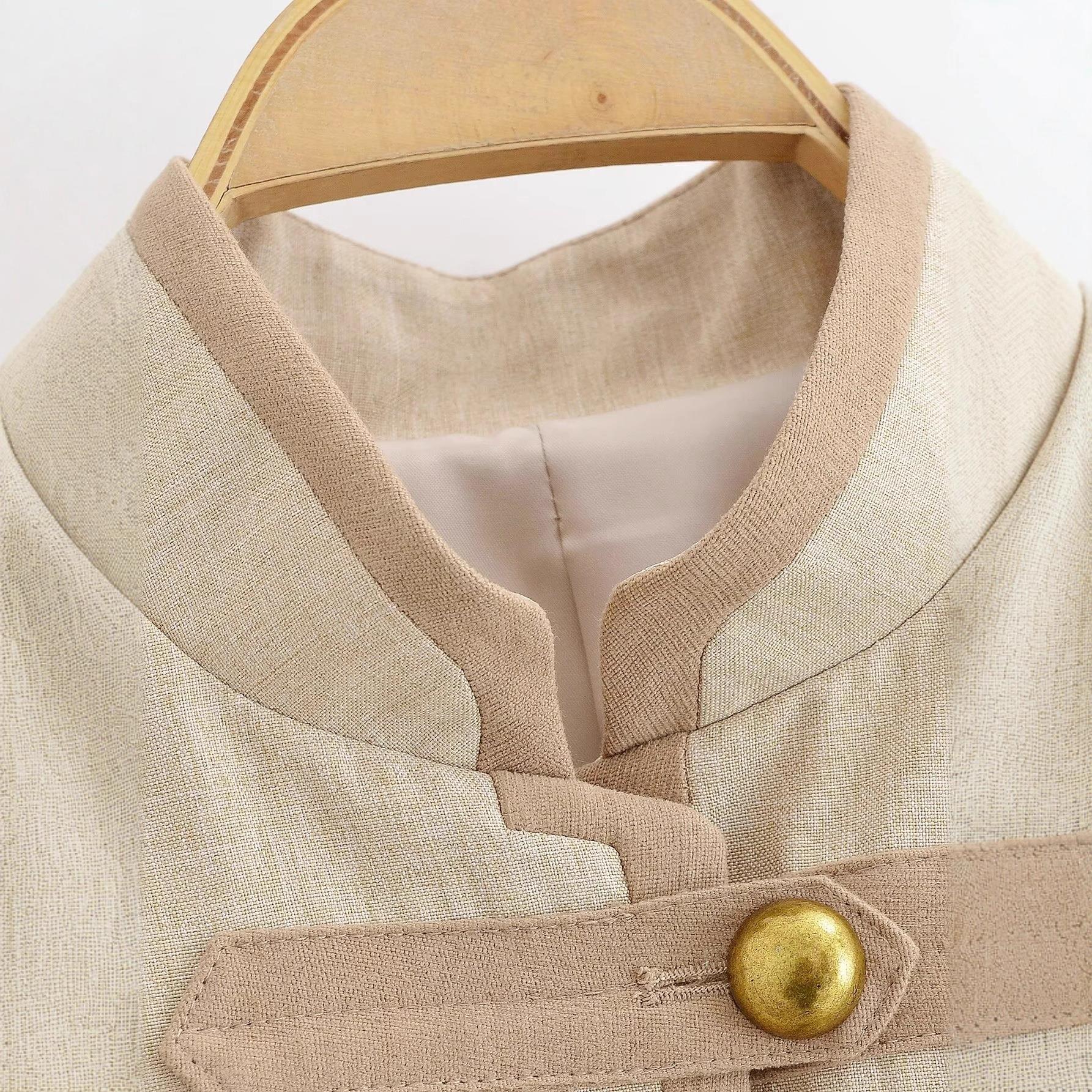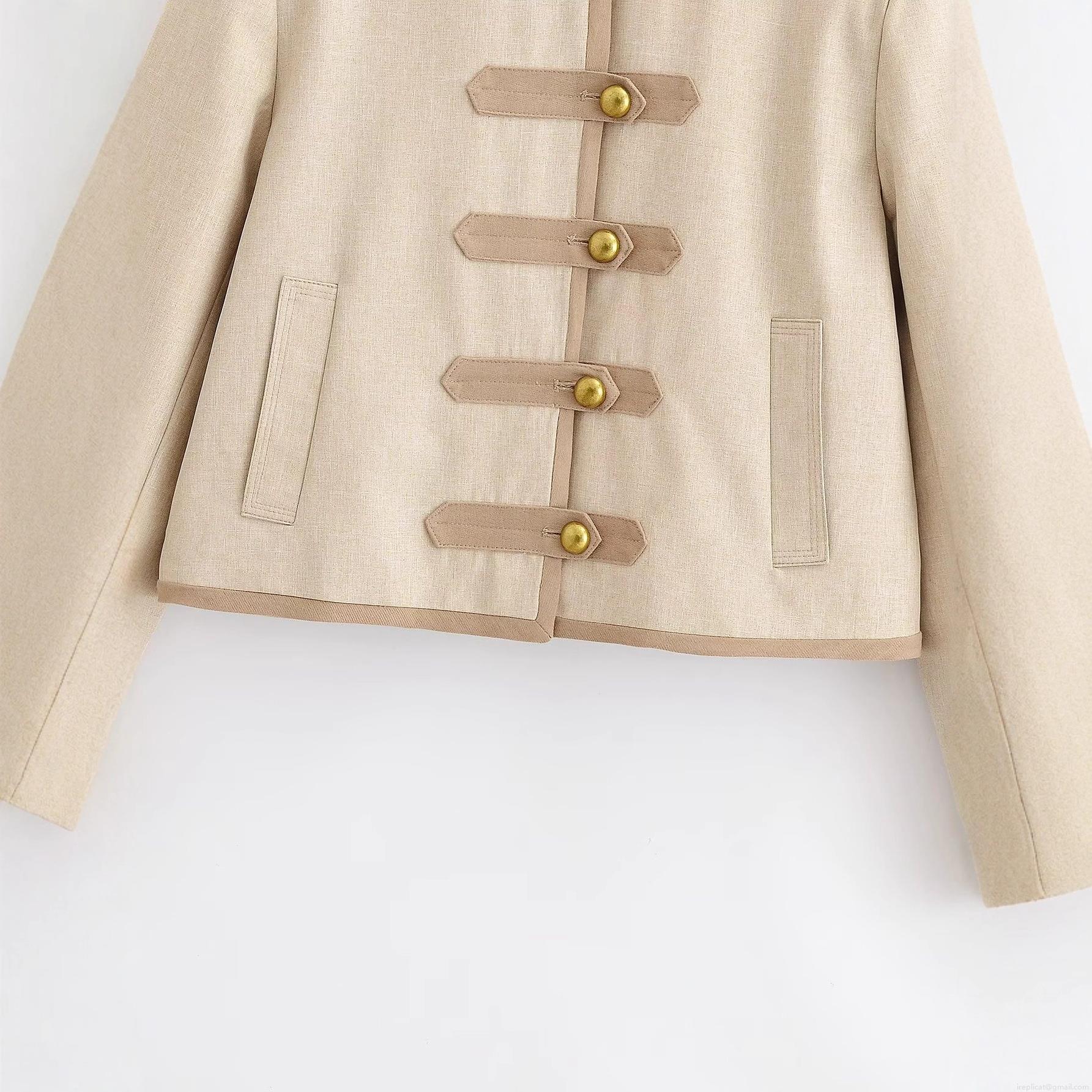 • Women's Stand Collar Blazer Retro Style with Metal Frog Buttons 100% Polyester Long Sleeve Short Outerwear Beige Suit for Autumn Daily Commute Office