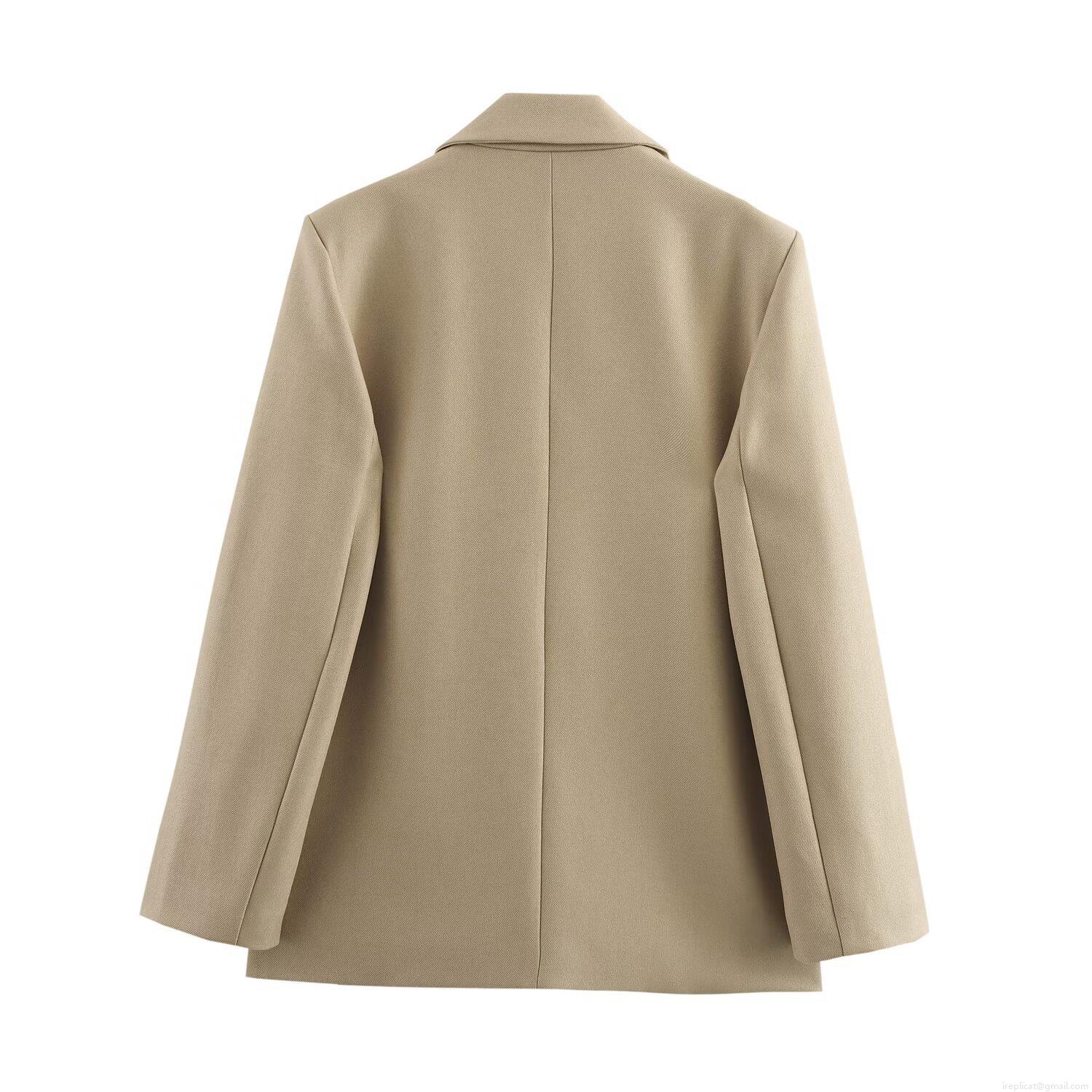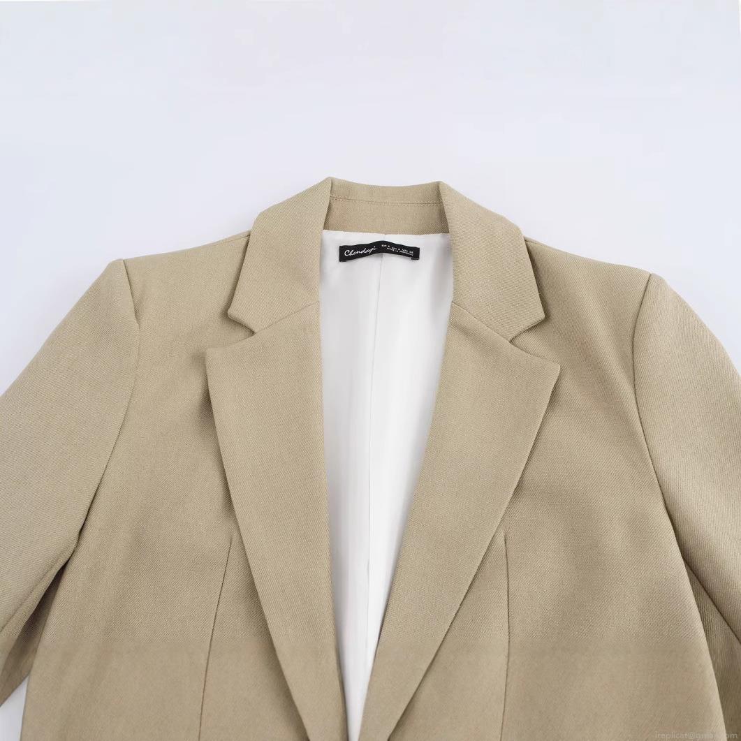 • Women's Straight Fit Shoulder Pad Blazer Jacket Single Button Khaki Mid-Length Twill Outerwear For Office Daily Streetwear Lady Casual Coat