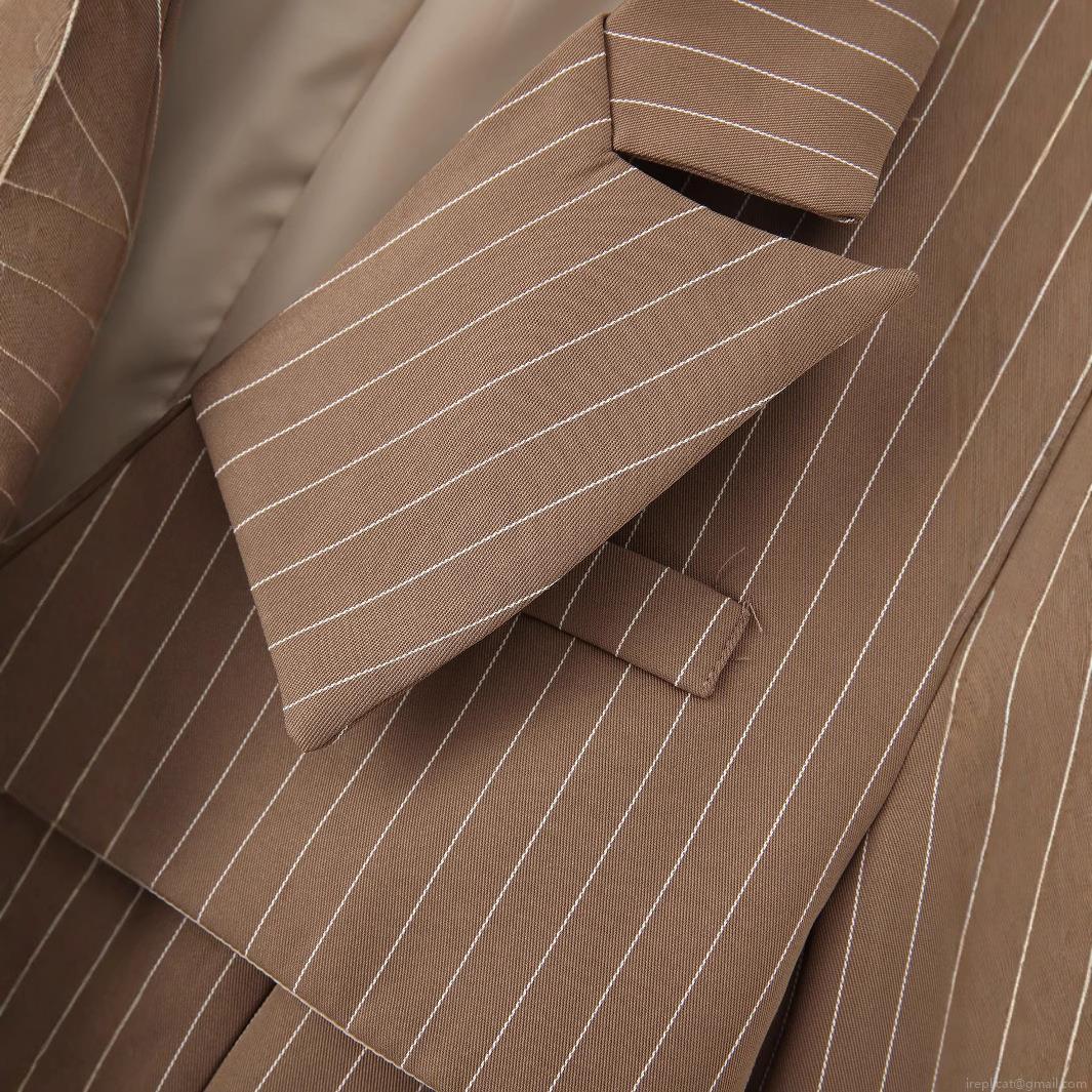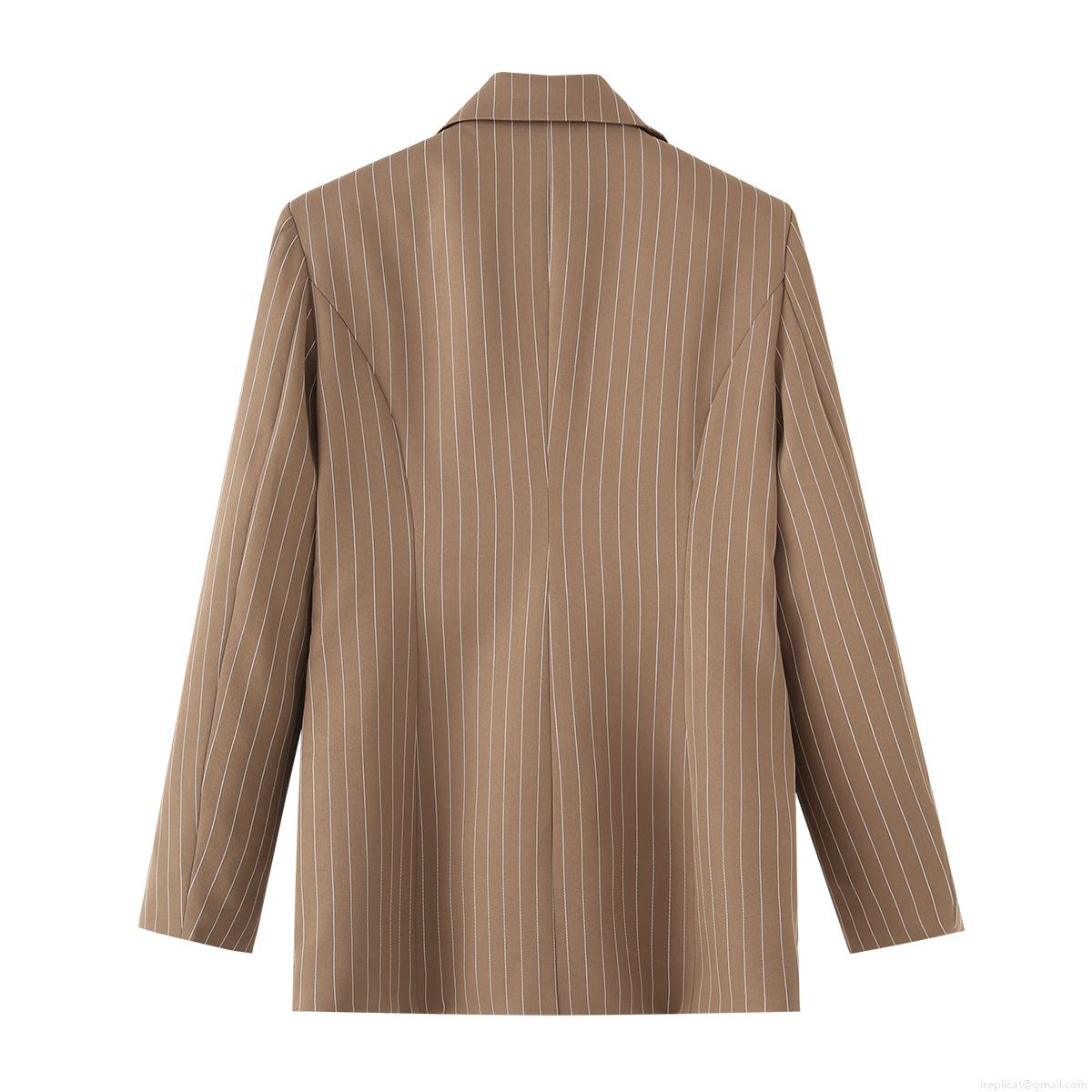 • Women's Striped Blazer Jacket Loose Fit Long Sleeve Mid-Length Outerwear Polyester Camel Brown Casual Office Streetwear Fashion Ladies Suit Coat Top