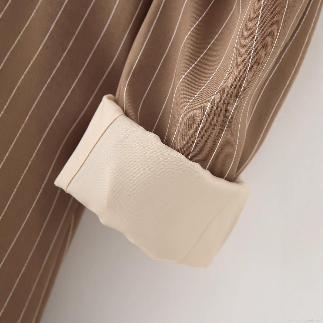 Women's Striped Blazer Jacket Loose Fit Long Sleeve Mid-Length Outerwear Polyester Camel Brown Casual Office Streetwear Fashion Ladies Suit Coat Top
