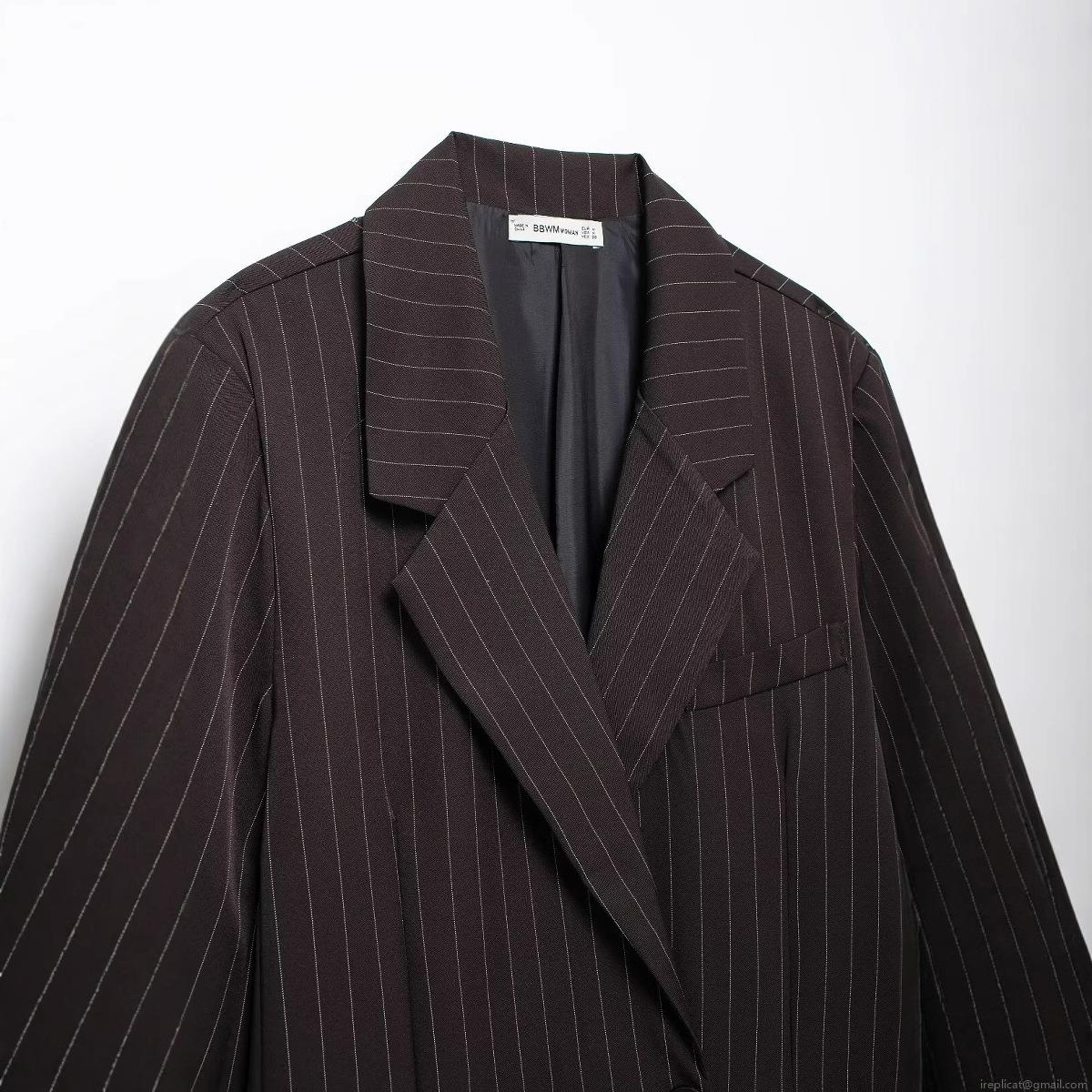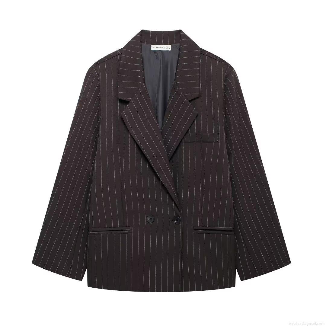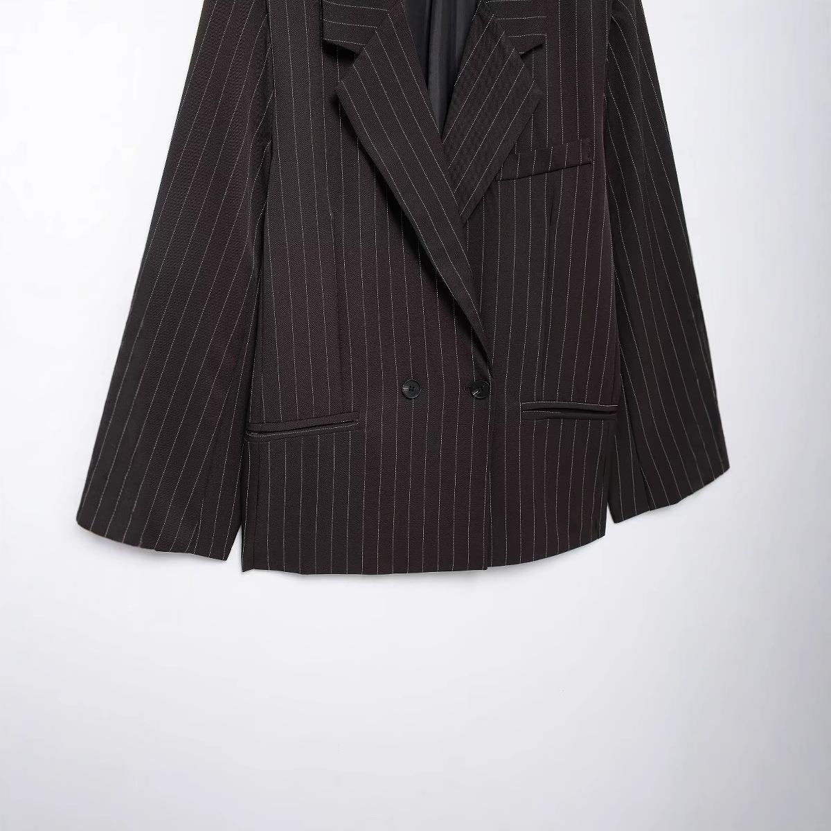 • Women's Striped Blazer Jacket Oversized Double Breasted Polyester Notched Lapel Long Sleeve Casual Suit Coat For Office Lady Daily Wear