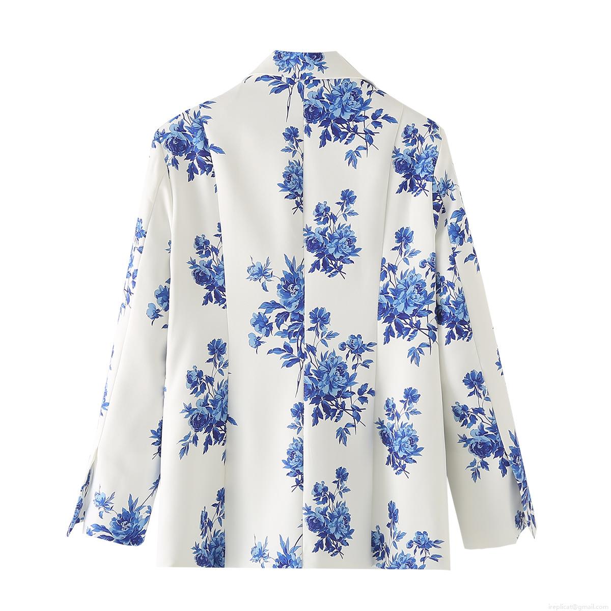 Pocket, Printing, Blue And White Porcelain, Single-breasted, Floral Print