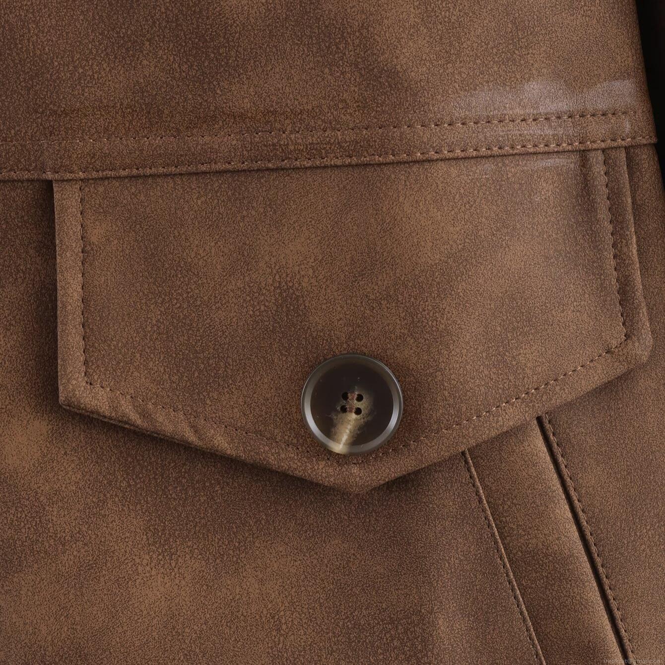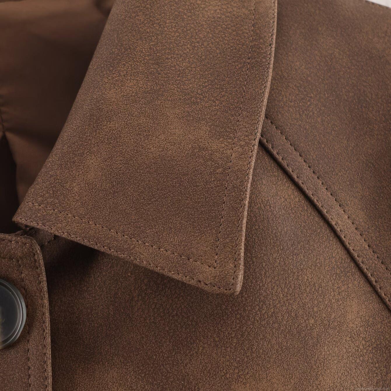 • Women's Vintage Deep Brown Faux Suede PU Leather Mid-length Blazer Jacket With Lapel Collar Single Breasted Large Pockets Streetwear Autumn Outerwear
