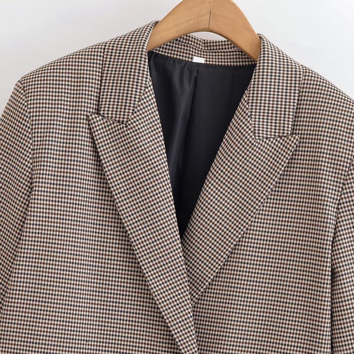 Houndstooth, Double-breasted, Pocket Decoration, Notch Collar