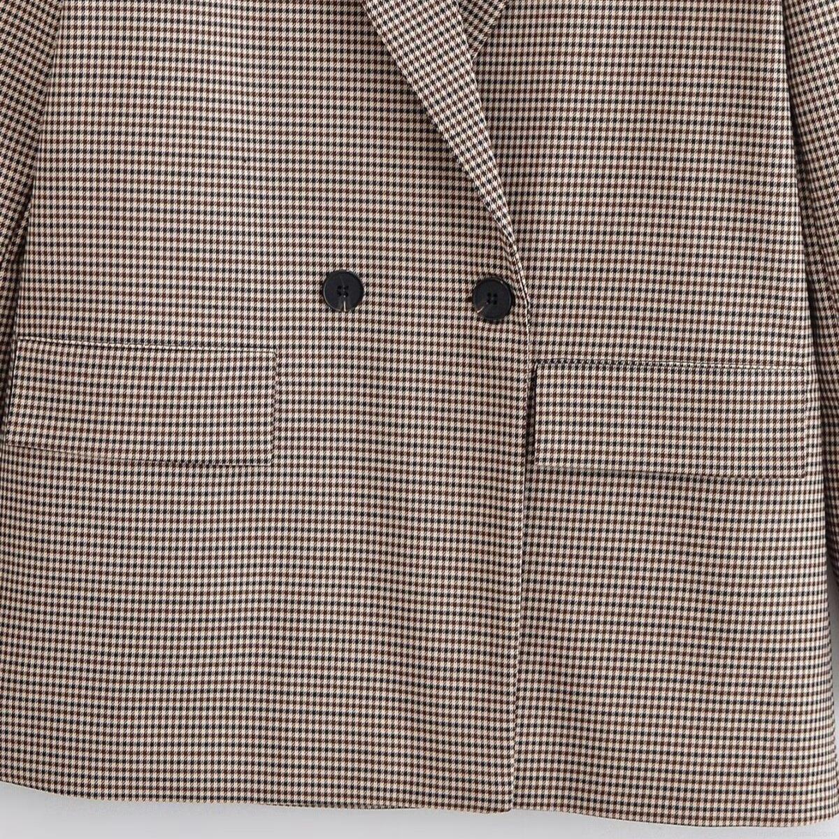 Women's Vintage Houndstooth Blazer Jacket Double Breasted Loose Fit Polyester Outerwear For Winter Commuting Office Lady Coat