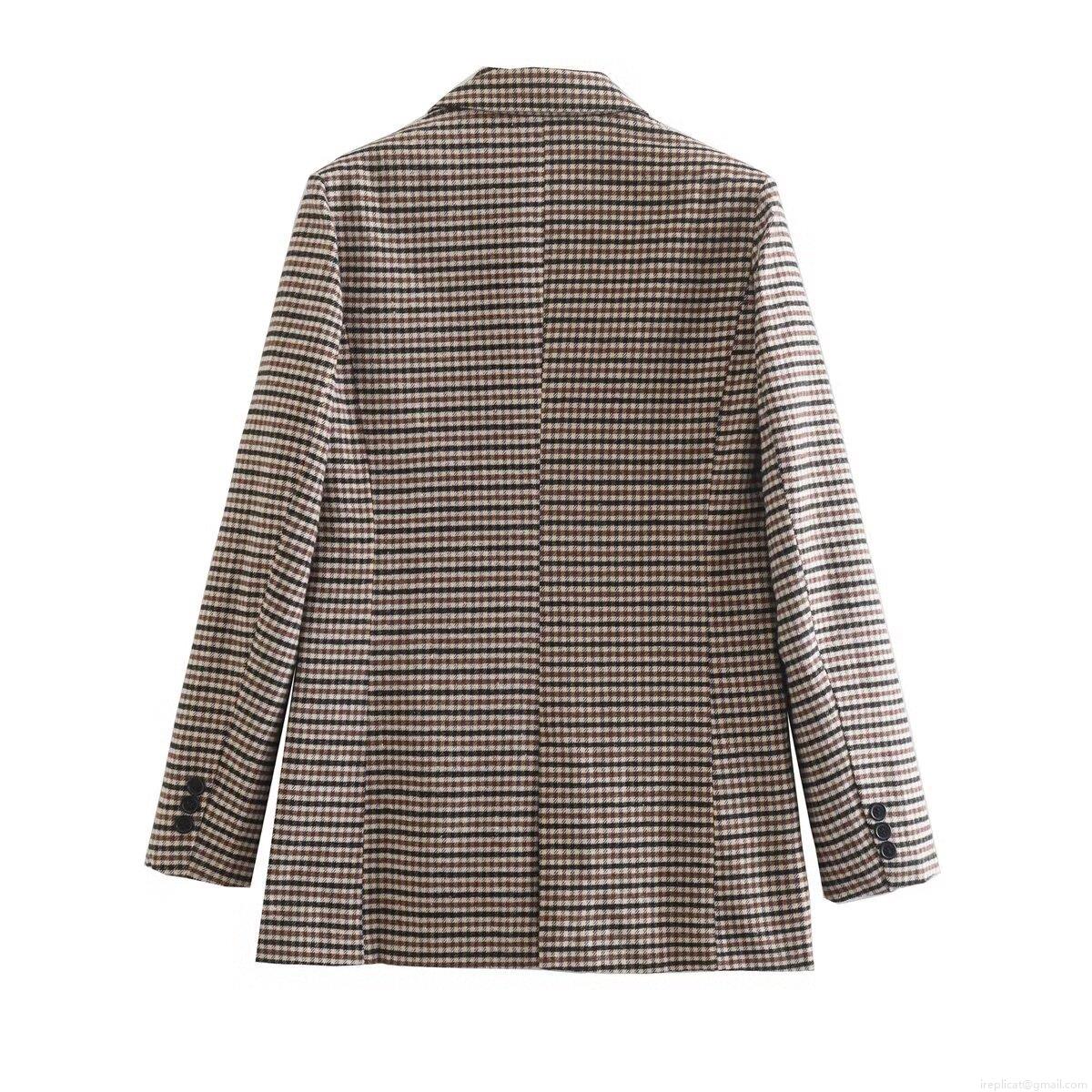 Women's Vintage Houndstooth Blazer Loose Fit Single Breasted Plaid Jacket 100% Polyester Long Sleeve Commuter Office Outerwear With Pockets