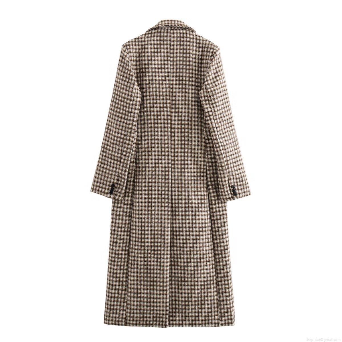 • Women's Vintage Houndstooth Plaid Long Blazer Coat Lapel Single Breasted Overcoat For Autumn Winter Fashion Streetwear Casual Warm Woolen Outwear