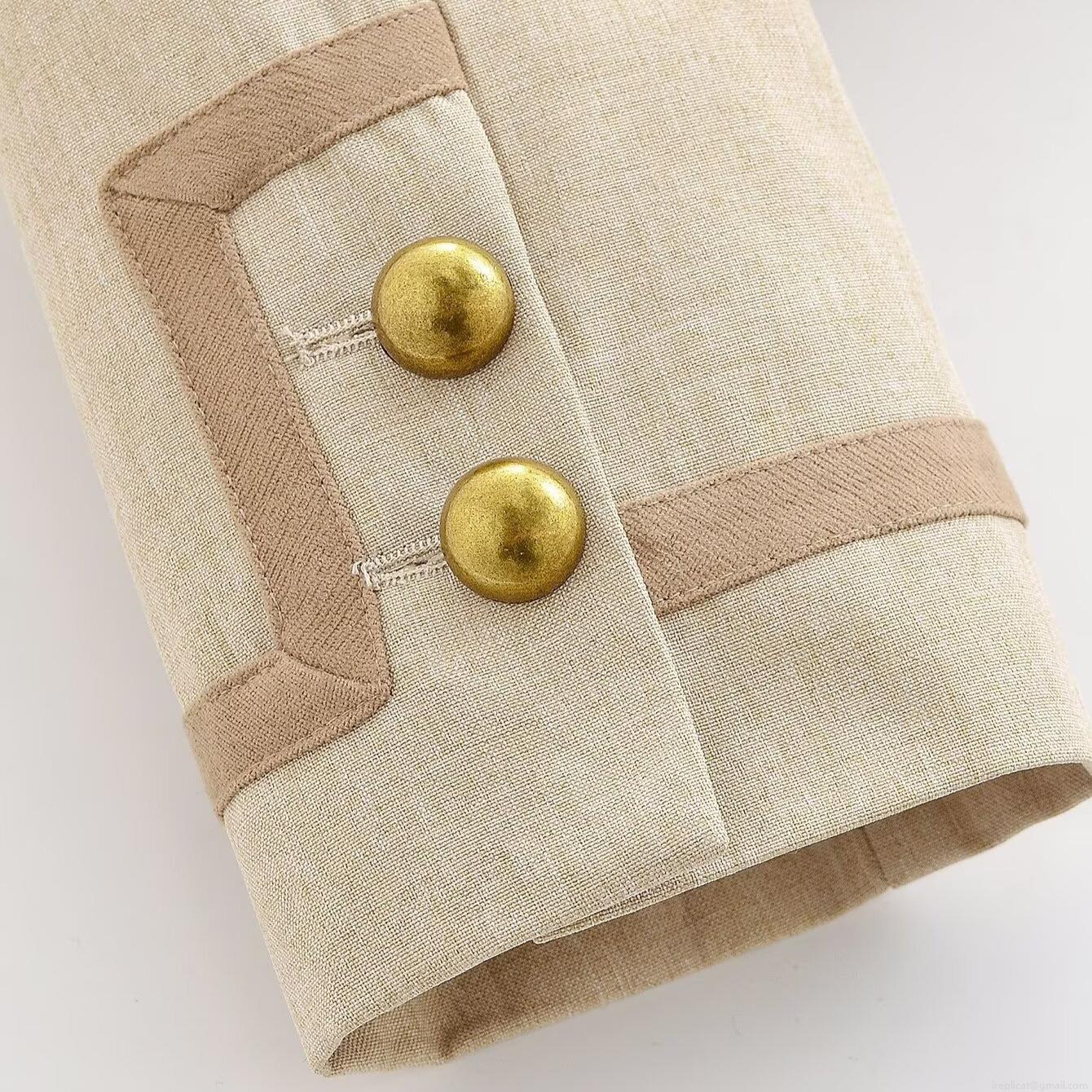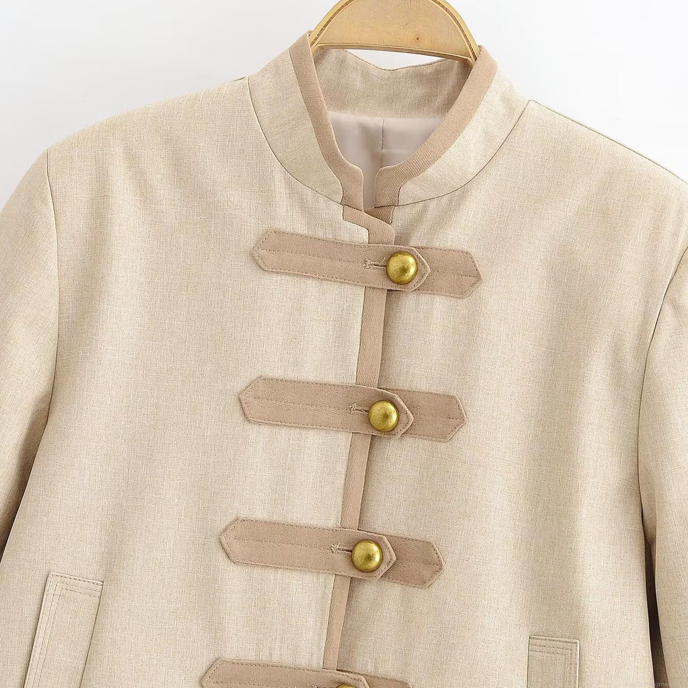 • Women's Vintage Short Jacket Blazer Elegant Chinese Style Metal Frog Button Stand Collar Piped Trim Long Sleeve Polyester Outerwear for Commuting Khaki